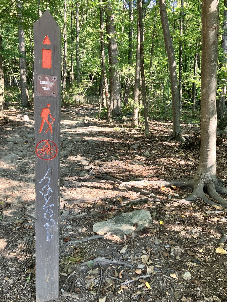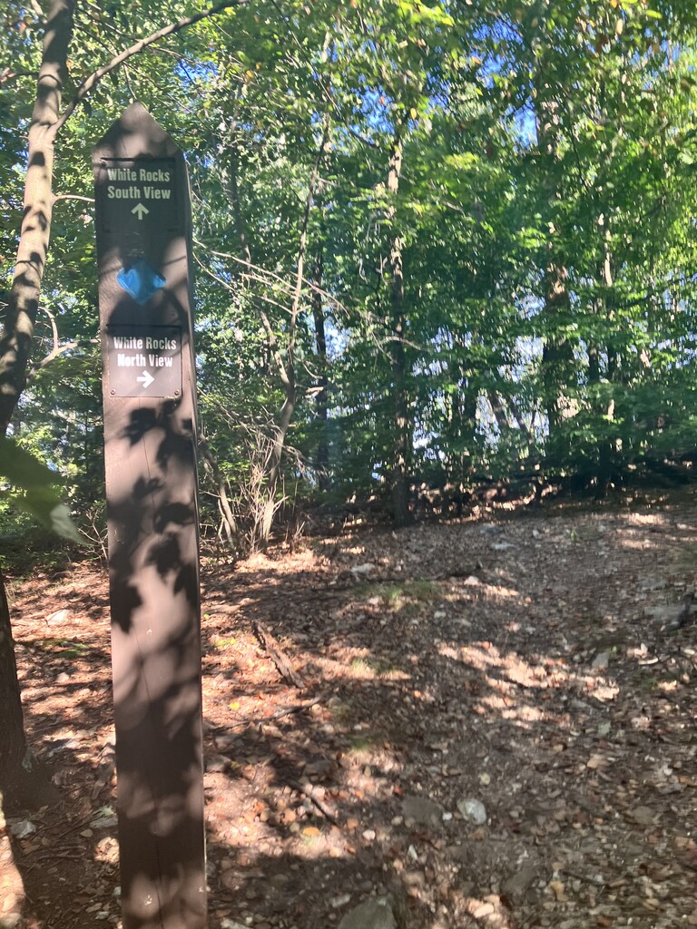For this FKT, I made sure to use the route creator's description and gpx file downloaded into Strava alongside the Sugarloaf Mountian map to ensure I followed the precise path. Everything was very well marked, except for one quick spot at White Rocks where I almost took a side trail before quickly turning around to return to the blue trail. There were a few fallen trees to navigate but other than that, the trail was well maintained and a beautiful tour of the mountain. I ran by myself and brought chews with me. I did take a moment at each peak to take a picture - it was a gorgeous day and the views were lovely.