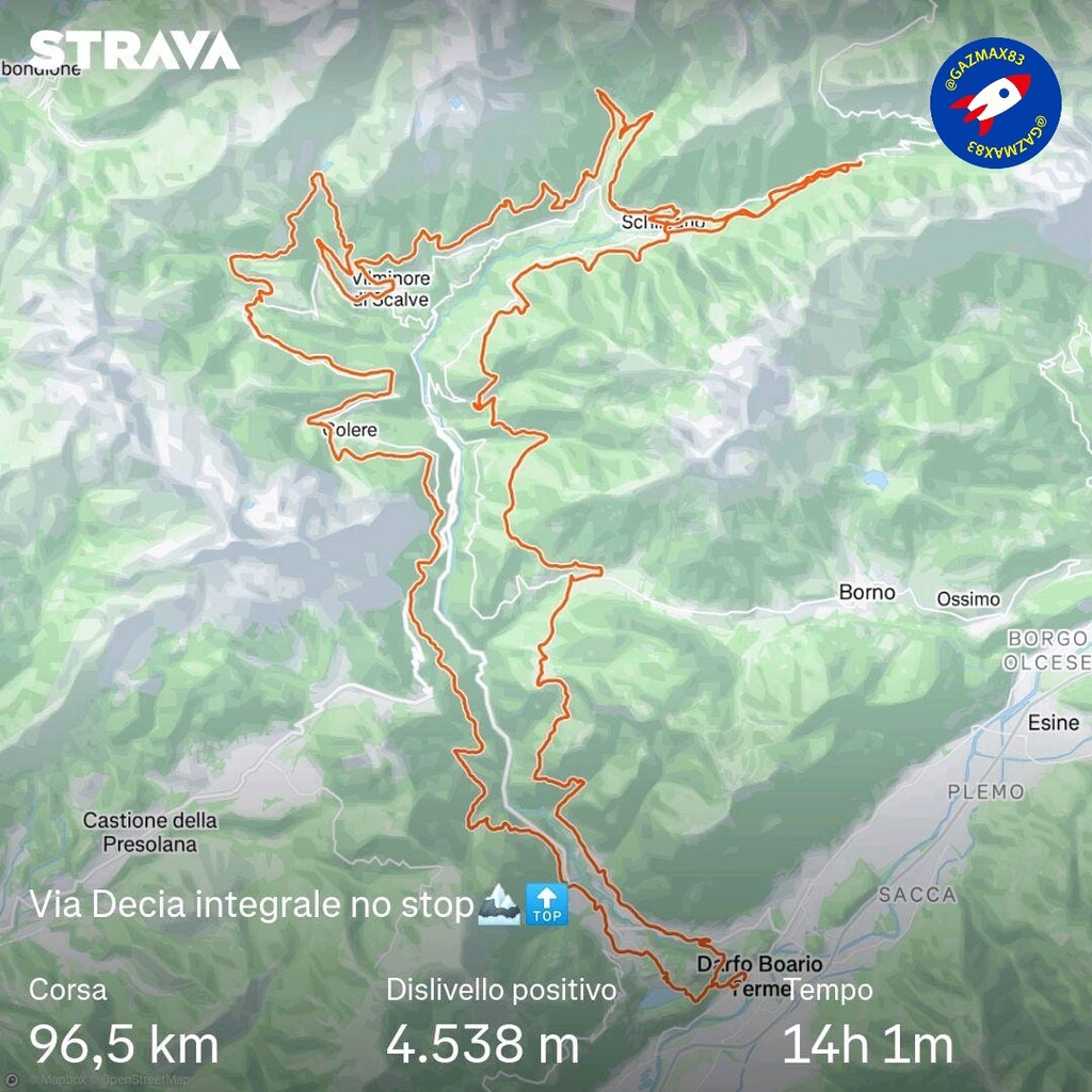Ci vorranno più di 14h di corsa, senza calcolare le lunghe pause per il rifornimento, nel complesso @laviadecia tocca dei punti spettacolari di interesse ambientale e sopratutto storico, la diga del Gleno, vista alle prime luci dell'alba, ti toglie il fiato, fa riflettere quanto può essere meschino il comportamento degli esseri definiti "sapiens".