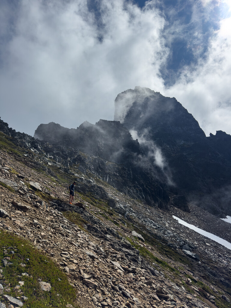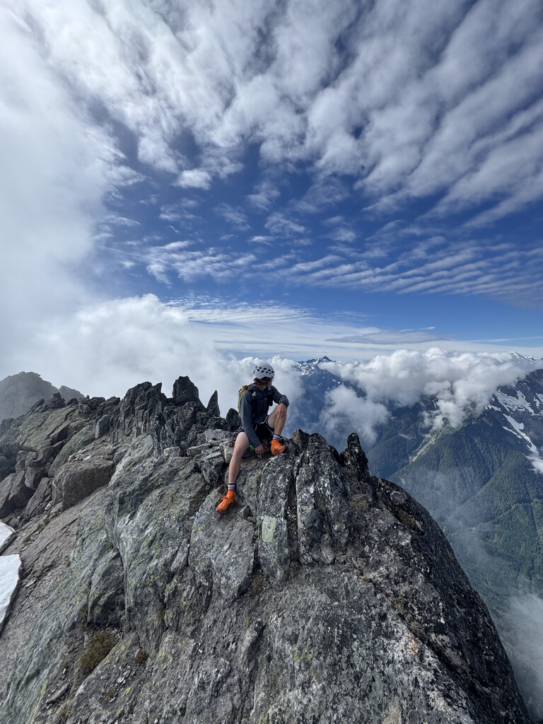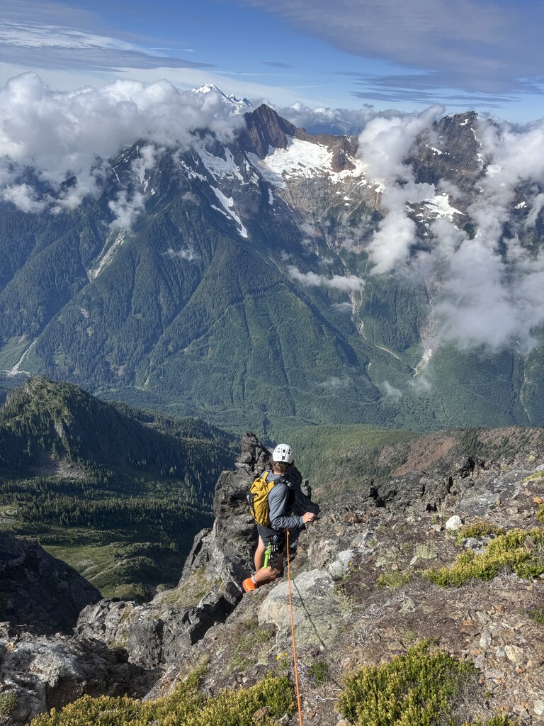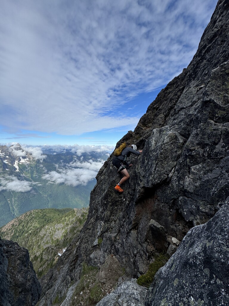 An awesome day on a classic Chilliwack River Valley test piece. A big caveat on this FKT... it is very possible, if not likely, that at some point someone has done this faster. We took healthy breaks, chatted with the one other party we encountered, and only really pushed the pace in the last 2 hrs or so. We also pitched out two pitches on the ascent, which some climbers would likely simul/solo. In the absence of a faster time publicly available, I wanted to publish this so that others are inspired to go fast on this route! The bushwacky approach is unpleasant but the mountain is well worth the price of entry.