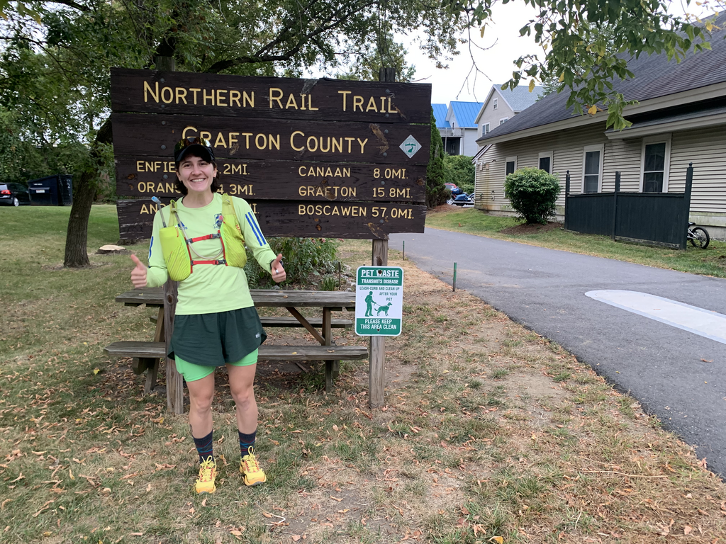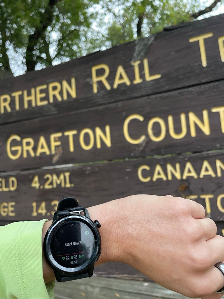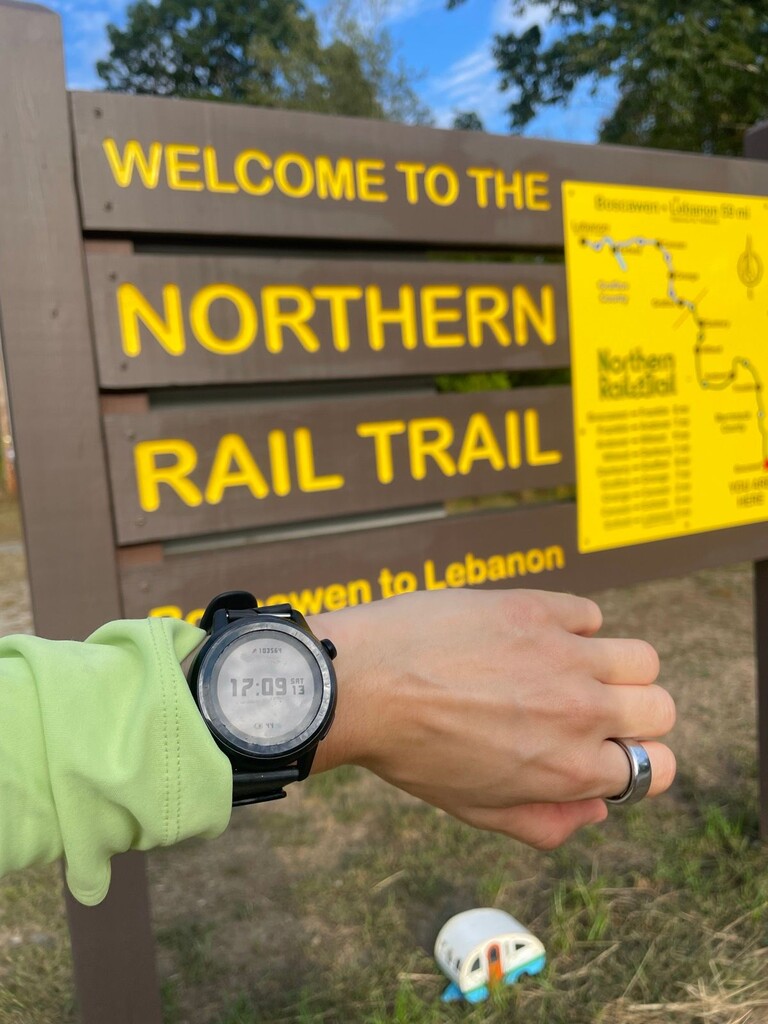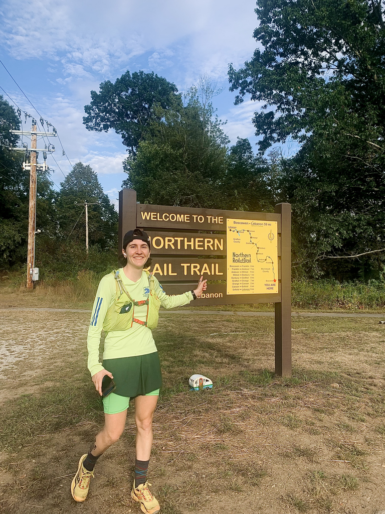 Started at 6:59 am from Lebanon with heavy fog. Was eating food I had packed on the move, but took a longer walk break to stretch + eat after 15 miles. Saw some porta-potties as needed, but if also felt like there were longer stretches of trail between towns. Stopped again at the Danbury Country Store (close to halfway - ~26 miles in), refilled water and bought some snacks. Didn't visit another establishment after that, but there were some gas stations later in the route that would have been easily accessible to restock. Felt pretty good until about miles 36-43, when I started to feel the hours and some pretty significant blisters, so I mixed in some walking. Came back around and felt good to run the remaining 7 miles to 50 in ~8:30ish (a new PB!), but hit another low to the end. Pretty mentally taxing finishing stretches - most of the rail trail does look very similar, and the sight lines are long. It can feel like you're just running in place for a lot of the stretches and the minutes really stretch. But, it's a great fast, flat, and quiet route, perfect for moving at pace if you want to see how quickly you can cover the distance.
