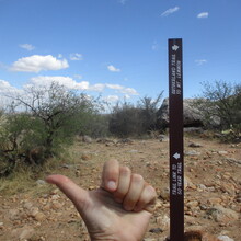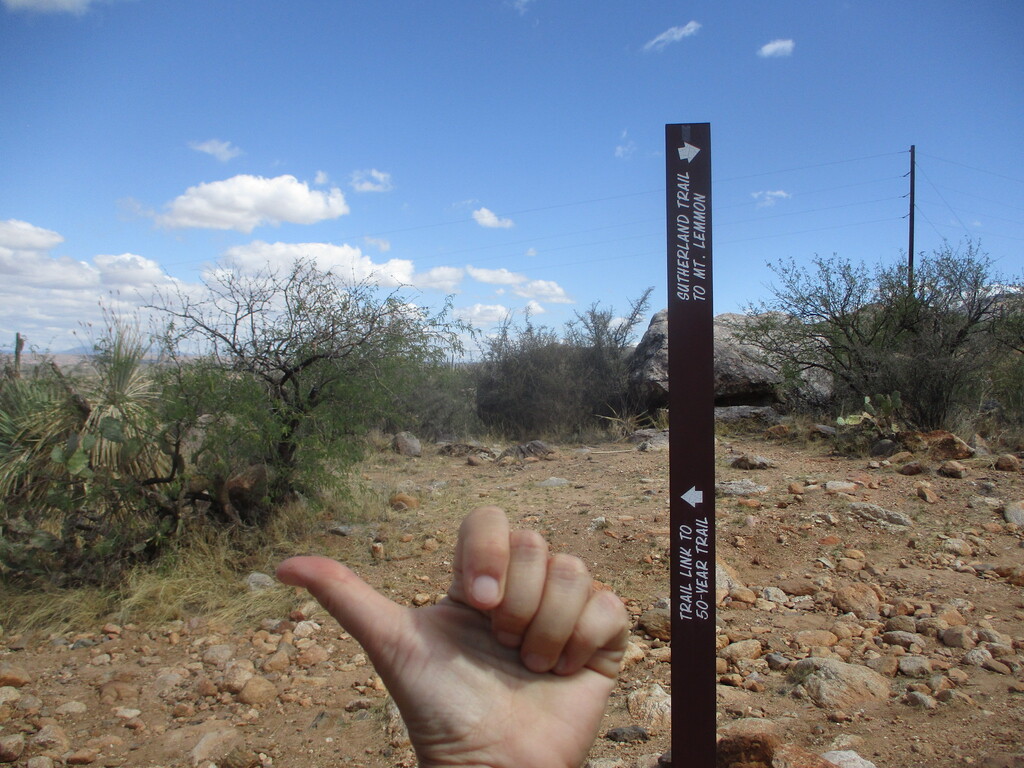 It was easy enough to run the Nature Trail and the Birding Trail in the opposite direction from last time. I was glad to have a better idea where the turn-around spot was on Romero, but sad to see that most of the "Wilderness" sign was broken. On to the Sutherland Trail and the longest sustained climb of the route.