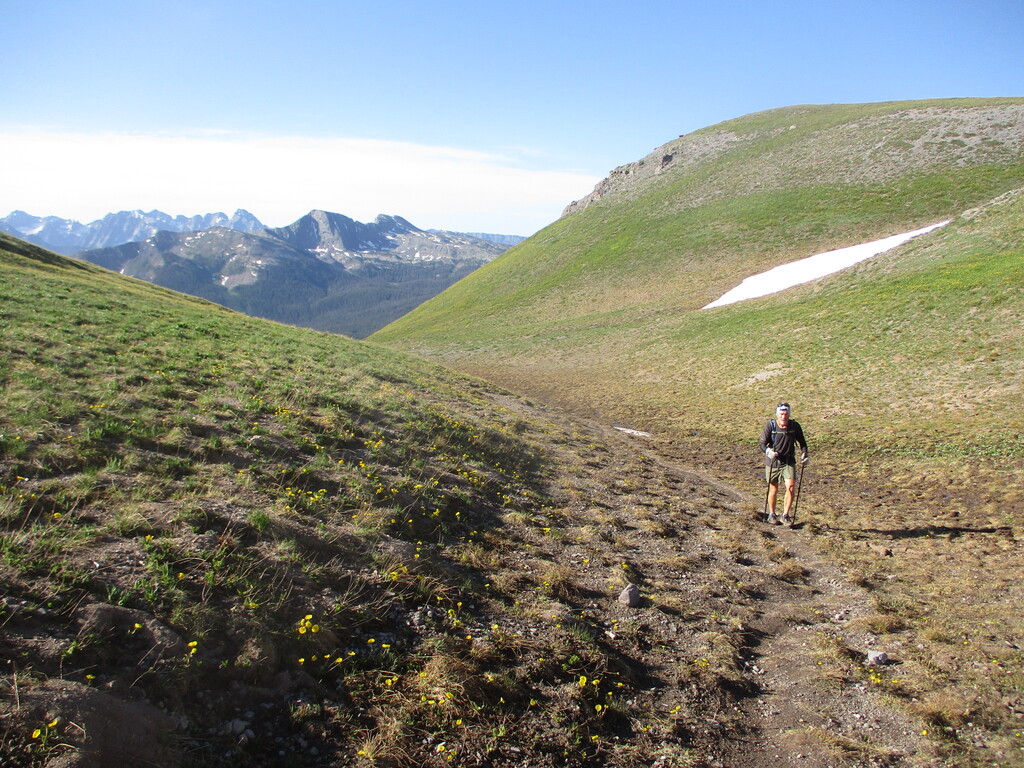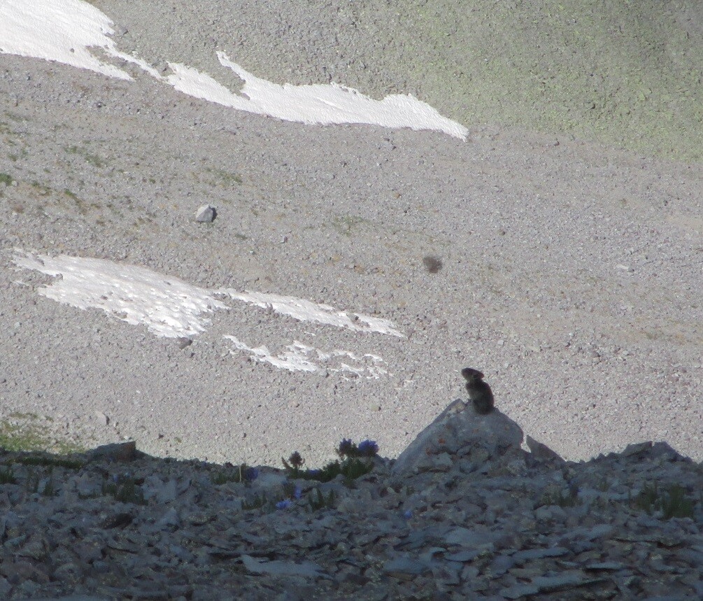 John and I enjoyed tramping around in the hills again, listening to elk bugling way below us, pikas squeaking all around us, and a marmot and a chipmunk for good measure. Summer flowers are blooming. Excellent time to be up there.