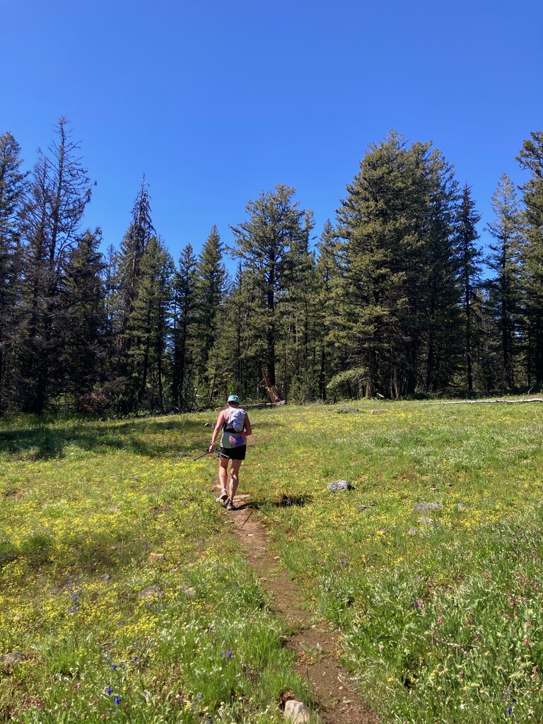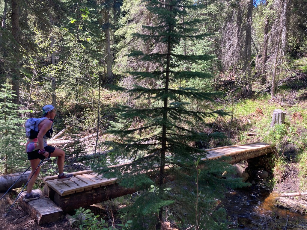 We both agreed, running at higher altitude on a hot day added to the challenge. It was a big day and a big run on the hottest day of the year to date. So hot in fact, I had to sit in a creek temporarily as we both were suffering from heat exhaustion. Creeks and shade eventually became our lifeline in the heat of the day. :)