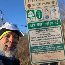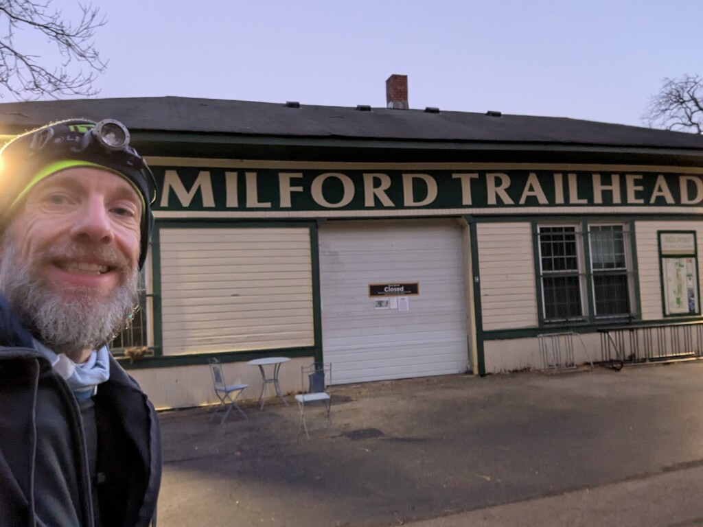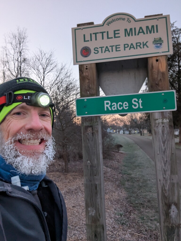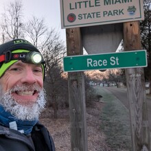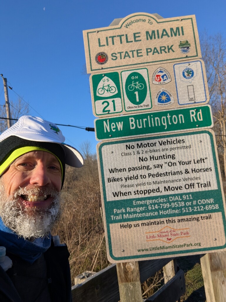 I traveled from north to south and ran this by myself. The northern trailhead begins across the street (southwest) from the Clark County Public Library. The trail is very flat and easy to follow. There were plenty of gas stations to stop and refill water and calories, but the first 20 miles were quite desolate. Also, be sure to check the gas station hours, as some were closed when I ran by. Once you pass under I-71, the old-growth forest begins, which was the best part of the run. When you reach the active hunting area (it was live when I went through), look to the west, and you'll see a bald eagle's nest. I completed this run three days before Christmas in 2024 and would recommend doing it during warmer weather if possible because you'll have more light to work with. I drank mostly water with an occasional gas station Powerade mixed in. Carbs came from Maurten gels and about every other hour I mixed in a packet of LMNT for salt.