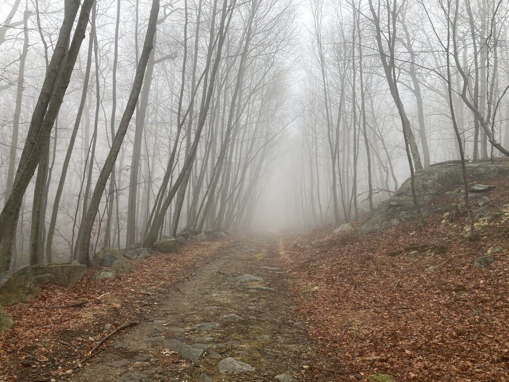 I initially wanted to do this self-supported (with a car) but I thought it would be too confusing and not that much faster with the various winter road closures. I started at the Silvermine TH and went clockwise, choosing to pop down to the road after the second shelter to skip some of the technical trail sections. A small section of the Appalachian Trail is still rerouted from floods a couple years ago so that added some time before West Mountain Shelter. There are 100s of miles of trail and road in this park and I spent a lot of time just trying to navigate and make sure I was on the right path. With more practice this wouldn't be an issue. There is also likely a more efficient route to do this unsupported, though I was pretty happy with my route. A little ice still on some north facing slopes but not bad. I probably saw more than 100 people out on trail despite the mist. I carried all my food and filtered water from streams.