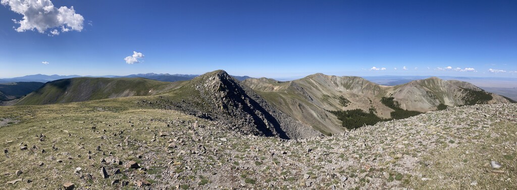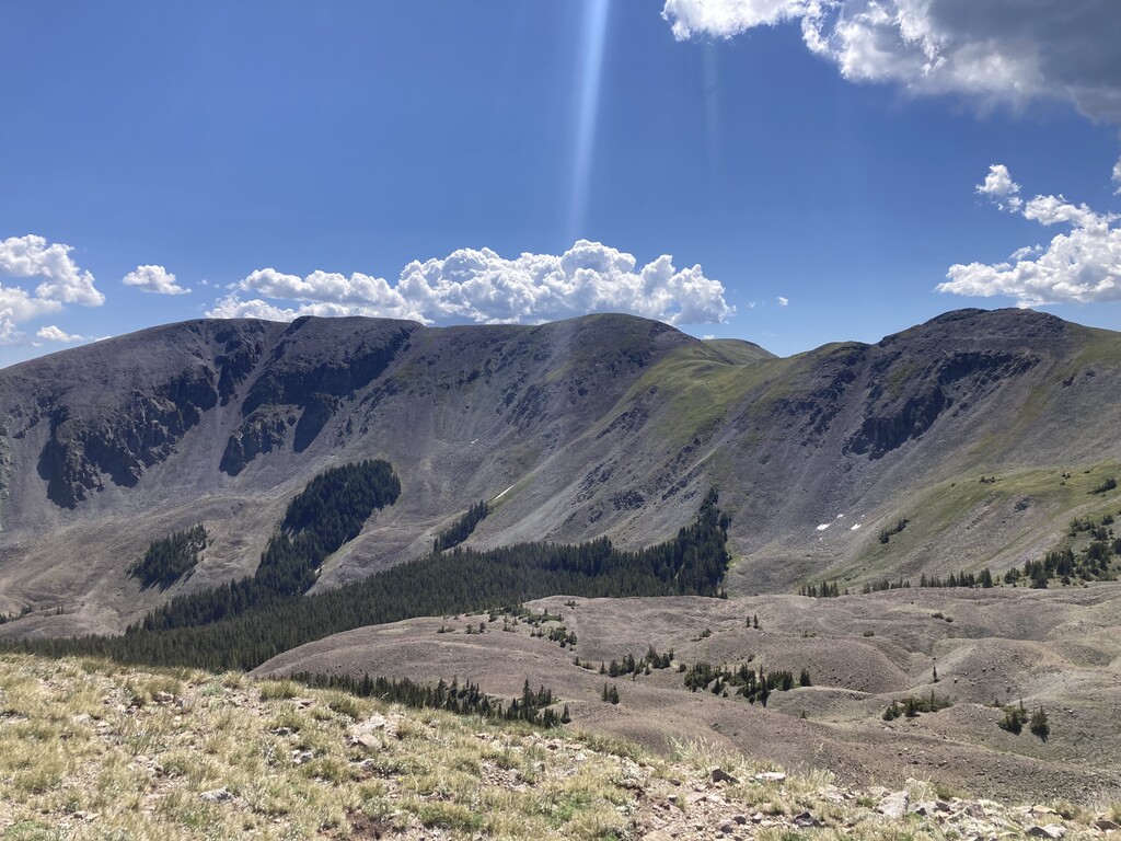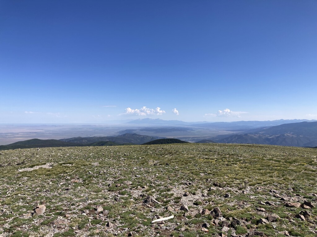 We ran this loop last fall in the dark and it seemed like such a cool ridgeline that I wanted to go back and see it in the day. I ran this the day after I ran up to the Truchas Peaks so I wasn't well rested. I also probably shouldn't have slept at 8500' the night before, though it was nice and cool. I saw a few hikers on the trail but once I got up on the ridge I didn't see anyone else. It was gorgeous, and certainly easier to navigate in the daylight. It was neat being able to see several 14ers to the north. I brought 1 1/2 liters of water/Gatorade. I flew back home that evening. From Strava it looks like Peter Gilroy had the previous FKT in 7:37, though it doesn't sound like he was trying to go super fast. There is still quite a bit of room for improvement on this one.