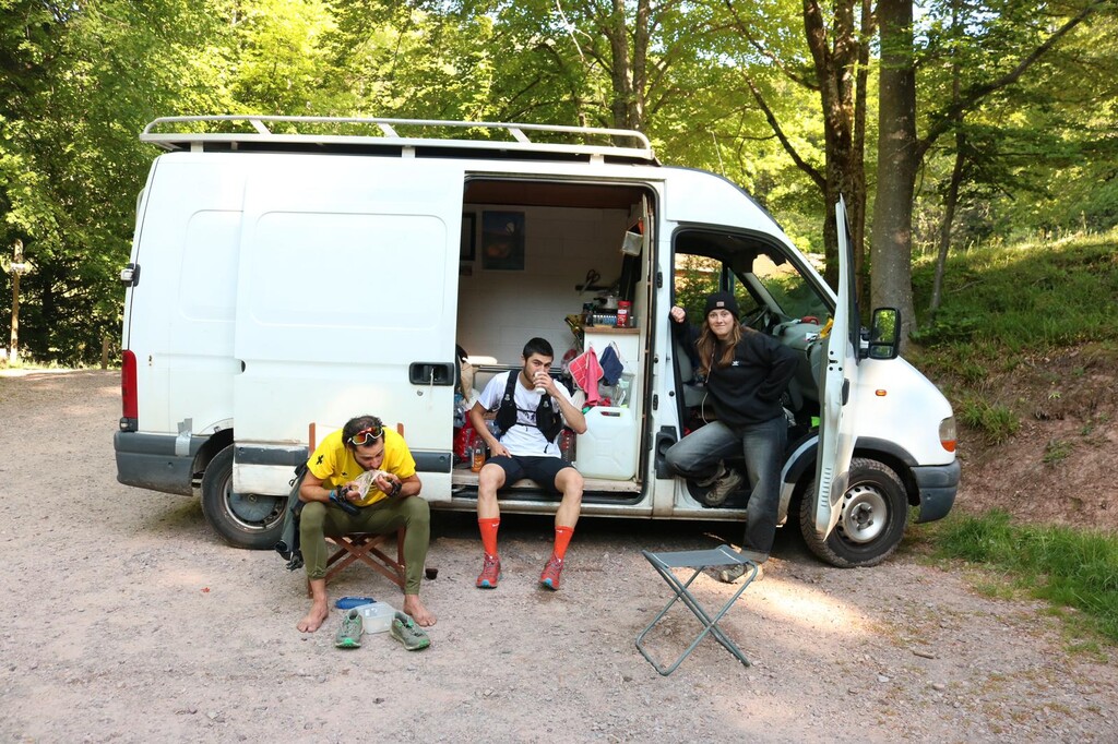 Et ça paie : les 80 premiers kilomètres sont presque trop faciles. Les paysages entre châteaux et sentiers de montagne sont splendides. L’assistance parfaite de Gwladys et Carla nous permet de ne penser qu’à avancer.