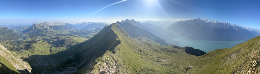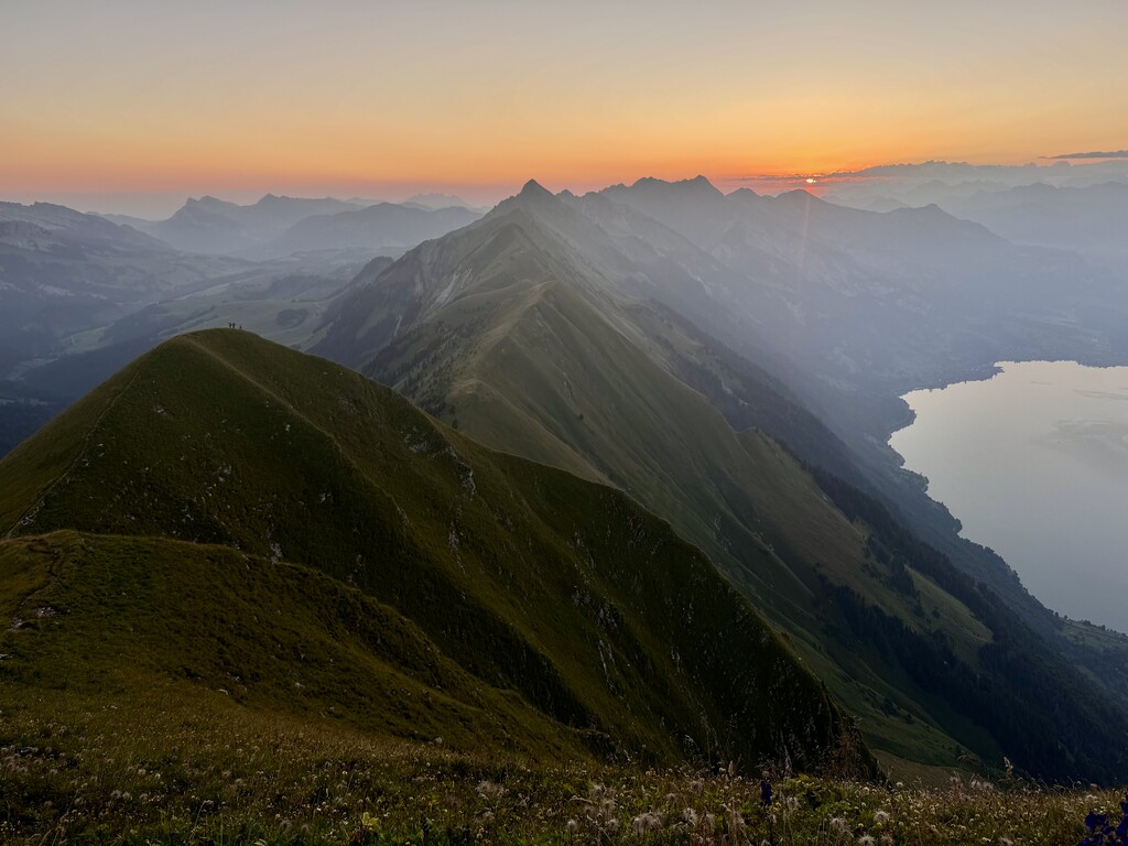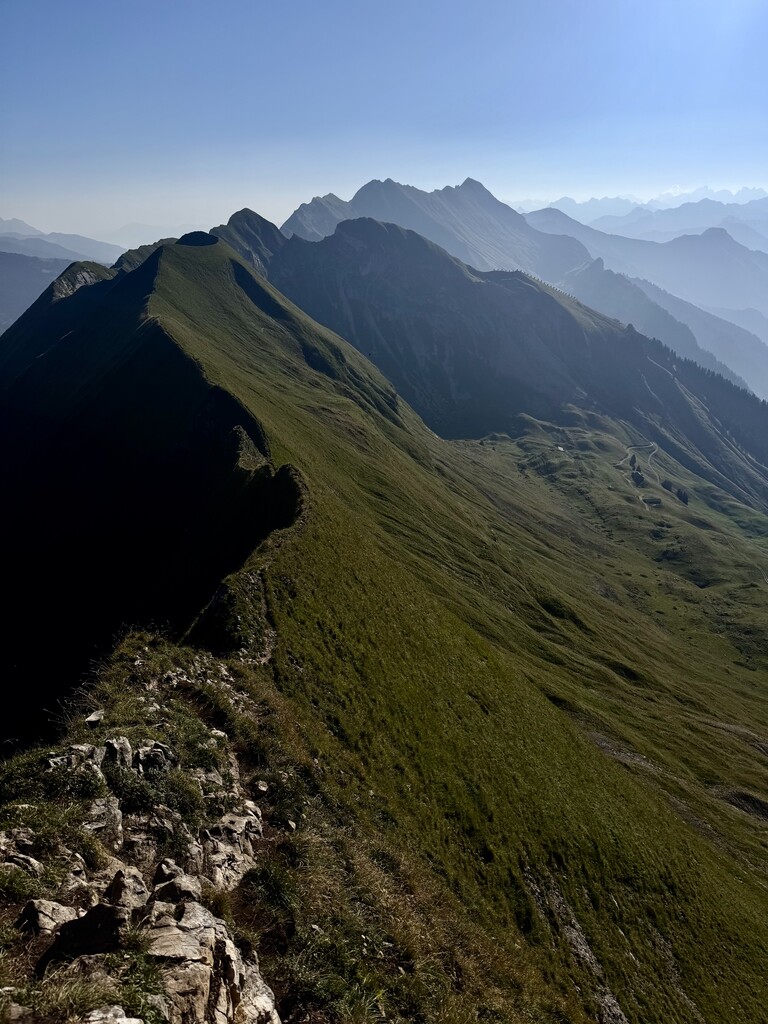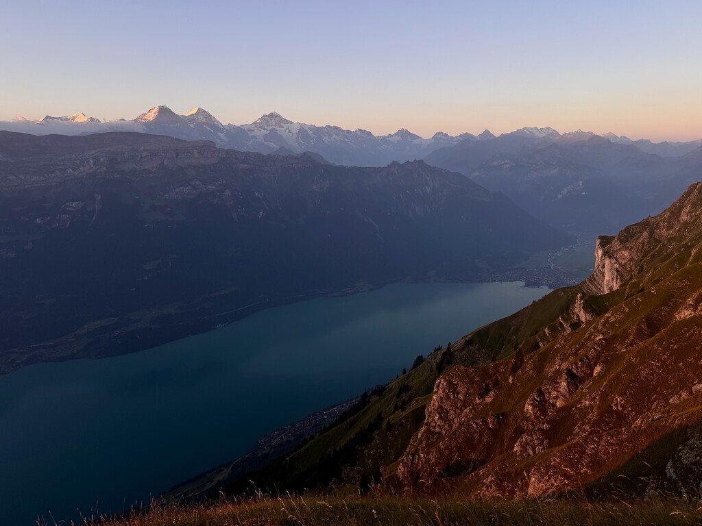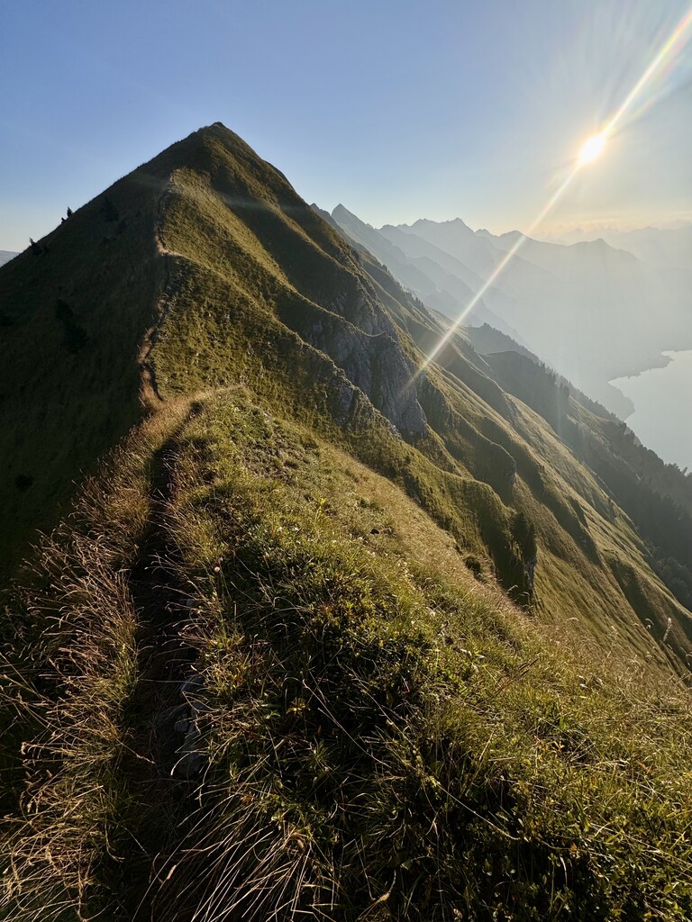 Alpine start around 330am. Immediate VK before gaining the ridge. Drank 3L, about 2k cals. Training lode 365. Really, no joke. Very exposed in sections and often unrunnable, a few borderline scrambly seggies as well: fun, but slow: a fall in some places would be grim. 12 summits, ridgeline for miles, views of the Eiger, Mönch, Jungfrau, Finsteraarhorn, and maybe a hundred more? A Swiss Classic. And a route of a lifetime. Absolutely wrecked me in the best way. Did not see anyone else attempting the whole enchilada, but a few folks on the Augstmatthorn for sunrise and a few hikers closer to Brienzer Rothorn. Otherwise just cows, sheep, and ibex! Nice to know even very undertrained the body can cash the checks, albeit begrudgingly, slowly, and with protest