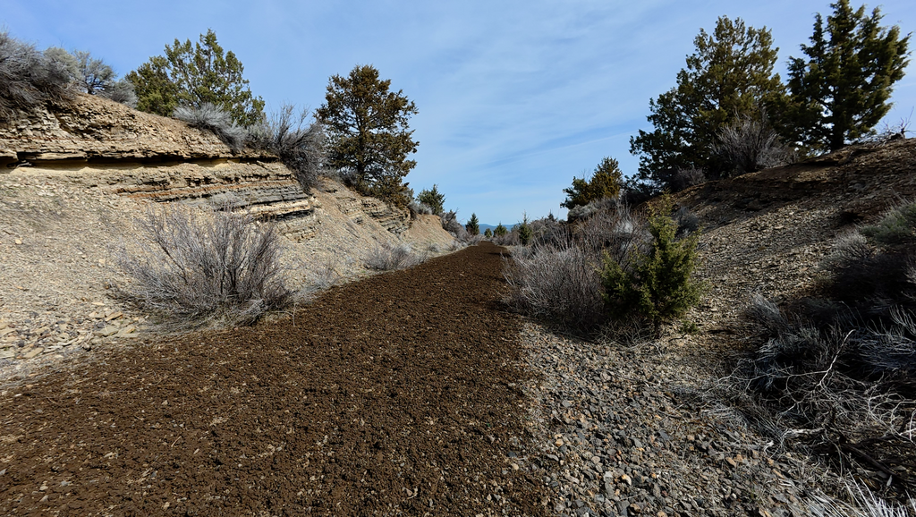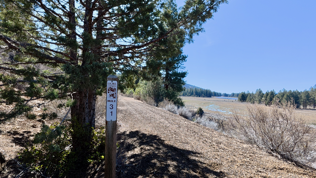 “It’s worth noting,” Christof said as we passed a trail junction, “that we won’t be taking the Woods Line spur section that heads north at Beatty. It’s officially closed now, especially after the Merritt Creek Trestle burned down in the 2021 Bootleg Fire.”