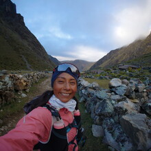 The weight of my pack and the rocky terrain made it hard to go fast, but I pushed myself to run as much as I could, walking for 30 seconds every kilometer. I got distracted and missed the GPX path, so I crossed a tunnel (dark and dripping — it was fun!). At the end of the tunnel, I looked down and saw people walking and buses labeled: “To Machu Picchu Citadel.” Luckily, I found a trail to descend and get back on route.