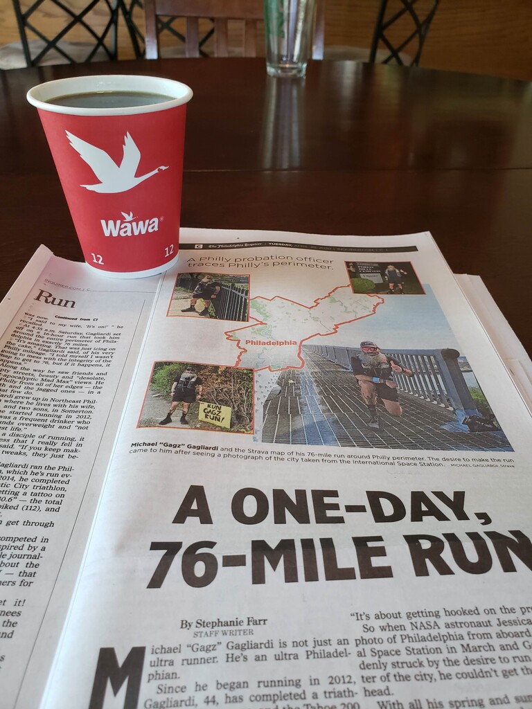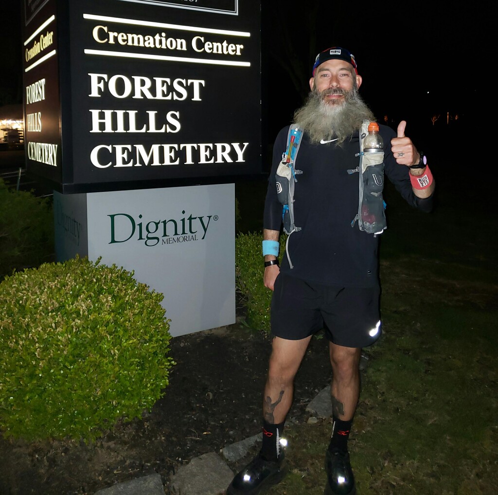 My friend, The General, acted as my crew chief and provided mobile support at 3 locations around the city. Eddie Gieda met me under the Ben Franklin Bridge and together we ran until 63rd & Market (roughly 20M). Big ups to Wesley Celestino, Darren Damone, Kristin Carroll, Jeff & Raelynn Bauer, and my brother Frank for coming out and showing support. I stopped my watch at 16H 14M in front of the entrance to the Forest Hill Cemetery (my starting point).