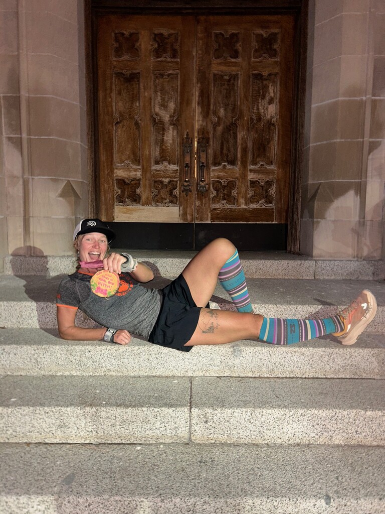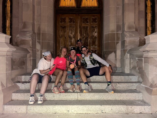 Coming into Wiggles Trailhead was unreal and my energy levels were back up. My pacers from earlier were there and joined me for the last little stretch back to the Cemetery where it all began. I ran hand in hand with Tatyana for the last little sidewalk bit. Christine had music blaring on a speaker. The vibes were spot on. Magic was everywhere. I am the luckiest girl, surrounded by people who love me. Doing hard things is fun; doing hard things with the people I love - that's the crown jewel of the human experience.