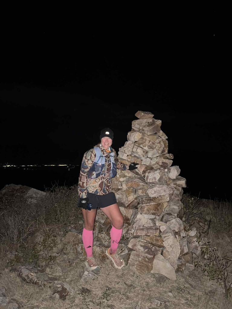The Round was perfect. It was a celebration of bad ideas and good friendships. My friends were all there to send me off. My daughter Kajsa gave me the warmest hug before I took off. I began the asphalt portion with my favorite road runner, Christine. We were surprised by Anthony who found us in the dark and joined in the fun. Together they distracted me from the fact that we were running road, all the way to Simplot where Ryan took over. Ryan gave me a history on Simplot (he works there) while we traversed Howard Mountain and Trail Creek. Ryan handed me over to Ed at Kinport Peak where I swear summer turned into fall the instant we left the summit. It was almost surreal how the weather changed. Suddenly it was cold. Ed (my trail dad) pushed me through Rock Knoll, Gibson, and Slate; he kept me moving through the night, a time when I could finally feel that it had been a long week and I had been up for 24 hours already.