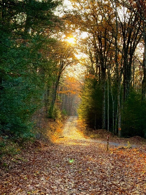 Again, the alarm went off at 0545; again, I turned it off and went back to sleep. I promise I usually have more discipline, but it really didn't matter, I didn't need to get up early. I only had 16ish miles to go to the car. I started hiking at 0705. Pretty easy going along the pipeline path. I did misinterpret a turn though. I saw a red spraypainted band around a tree as an arrow. I realized pretty quickly that I had turned way too soon and was back on track. From the pipeline the trail turned onto another road. The forest was aglow in gold and green and made a perfect sight.