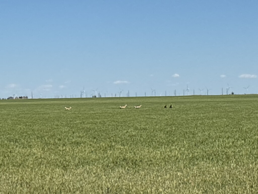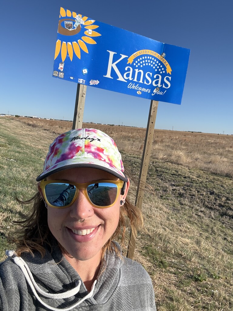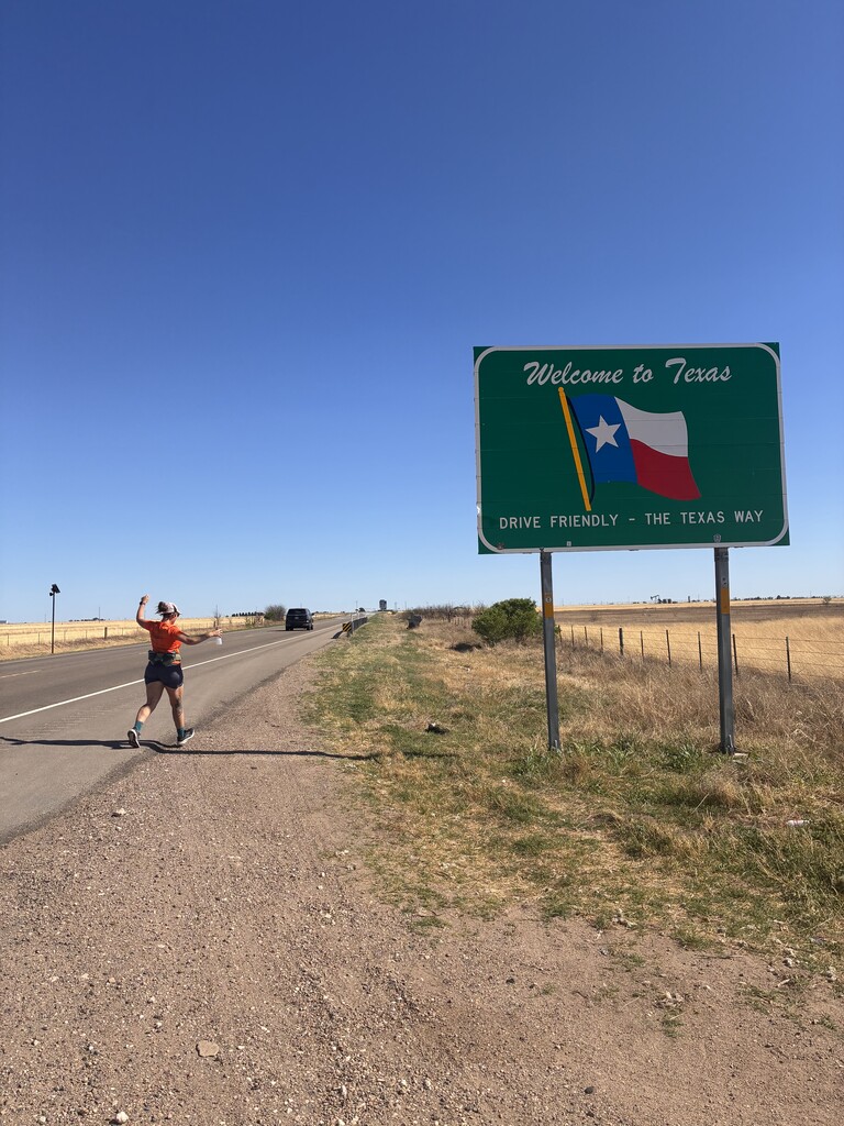Friday night my partner and I were sitting there after dinner discussing our long run plan for Saturday. A thunderstorm had just passed through and a cold front with it. We'd talked about running the Oklahoma Panhandle and how we'd do it but at 6:41pm Friday I realized we had a weather window and convinced him to load the car now and goooo! We made the 4 hour drive out to the half way point and slept in the back of the car just off the road by the Anthony community sign. In the morning it was 32 degrees and we had pickled eggs, poptarts and coffee as we watched the sunrise over the desolate landscape we planned to run. We clipped our respective dry bags to the Anthony sign posts and I dropped him off at the Texas border sign with a car key and drove back to Kansas. I left the car by a shuttered fireworks stand and started my run south bound as he ran north. I shed my sweatshirt in 3 miles and tied it to a yellow reflective post near Ponderosa. I had the wind at my back, but it was forecast to change to the south anytime, so I focused on making good time at the start. I spotted my partner across the highway about 14miles in and gave him a wave as we kept running. I had 1500ml of water, 2 Gu's, a pack of fruit snacks and a rice crispy treat until reaching my cache at the half way. I guzzled more water and refilled my bottles, applied sunscreen and repacked more snacks. I ate another pack of poptarts as I walked away from the cache. The views were expansive and more beautiful than expected. Prairie dogs squeaked and played nearby as the wind continued to gust at my back. The shoulder was wide but passing cars graciously moved over and often gave me encouraging honks or waves. My partner finished his run in 6hr10min and drove to Texas to watch my finish. About 5miles from the end I notice a herd of 6 antelope running along side me in the fields between giant windmills. I crossed the shadow of the 'Welcome to Texas' sign as if it were a finish line. 7hours 52min 26second. Not bad for a Saturday long run.