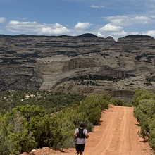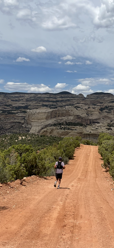 Started at start point on Duffy Mountain, ran to Echo Park Campground (End Point). Very hard and very hot! Crew traveled to meeting points along county road crossings. Crew and pacers consisted of Mark Buchanan, Sarah Groenwald, Michelle Christopher, John Christopher, and Ryan Larson. Had pacers for Cross Mountain section, 12 Mile Mesa, and Thornburg Draw. Trail is very exposed and very little water access.
