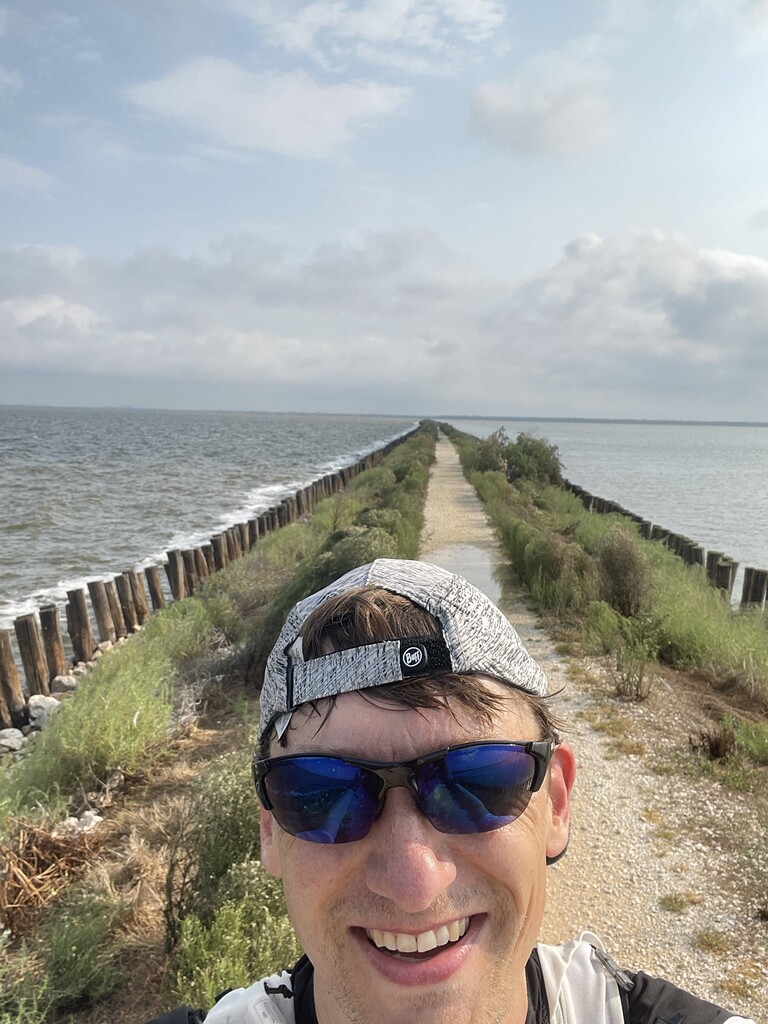 2024 I had to change to self-supported due to lack of water. This year I started with nearly 4 liters in my backpack (instead of 2.5). As a cloudy day was expected I allowed myself to start shortly after 6 am so no headlight was required. I parked again in Comacchio but instead of clockwise I ran anti-clockwise this year.