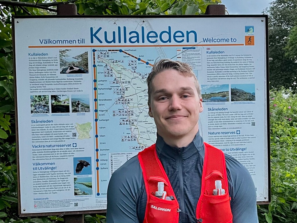Fyllde på vatten i Arild, Mölle (innan hamn) samt Viken. Hade på mig väst med 2*500ml softflasks, samt 2*250ml fyllda med rent pulver. Även en liten påse salt för nödfall, samt toapapper för andra nödfall. Skor jag använde var Adidas Terrex Agravic Speed Ultra (instabila som attan, men snabba)