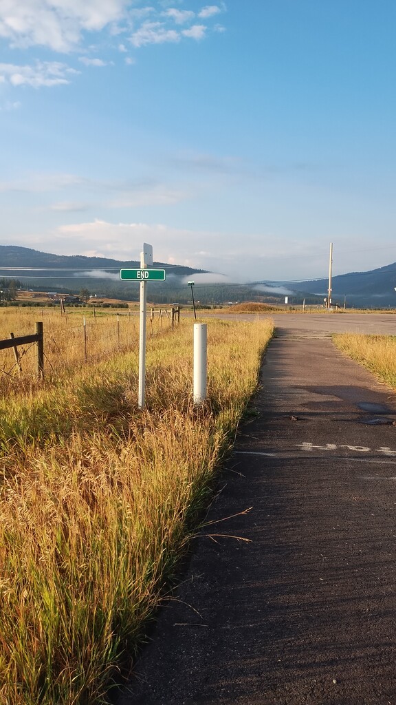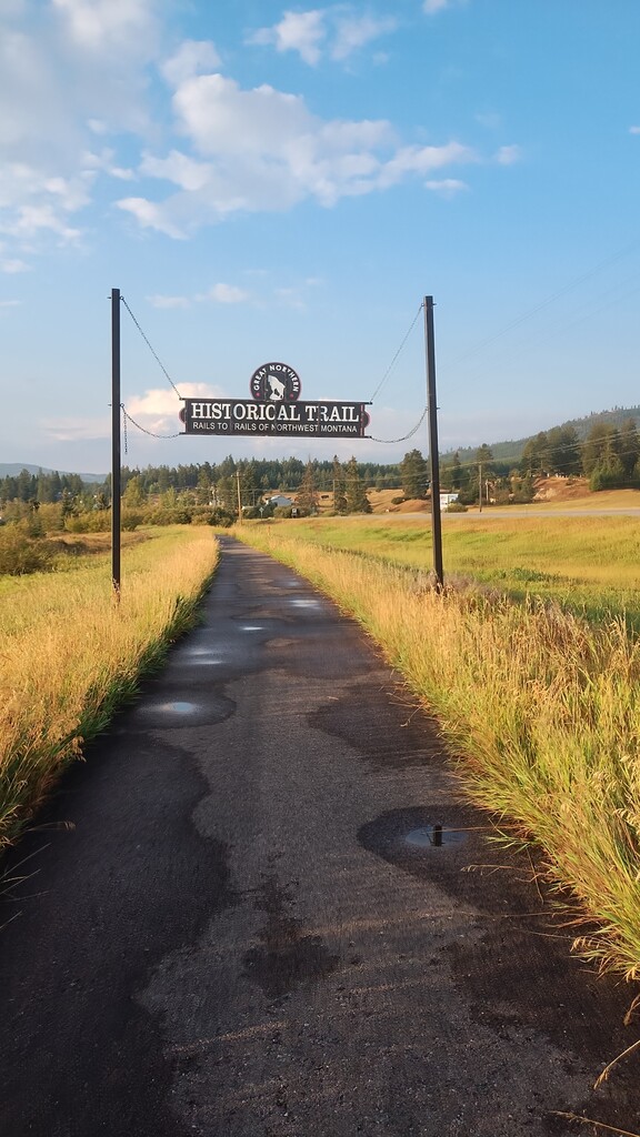 I started in Somers and chose to run to Kila and back for a total of about 42 miles. I parked at the boat ramp parking lot for Flathead Lake and then walked south half a mile to where I believe the trail starts. I took a picture of the sign for "The Terraces" which is an apartment or condo right where the trail starts. I decided to do about a 6am start so that I could finish before the heat of the day. I took a picture of where the trail ends in Kila. There is a sign that says "End" where the trail runs into "Smith Lake Road".