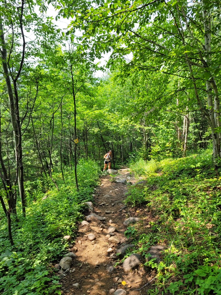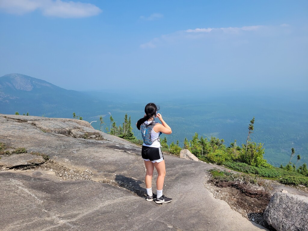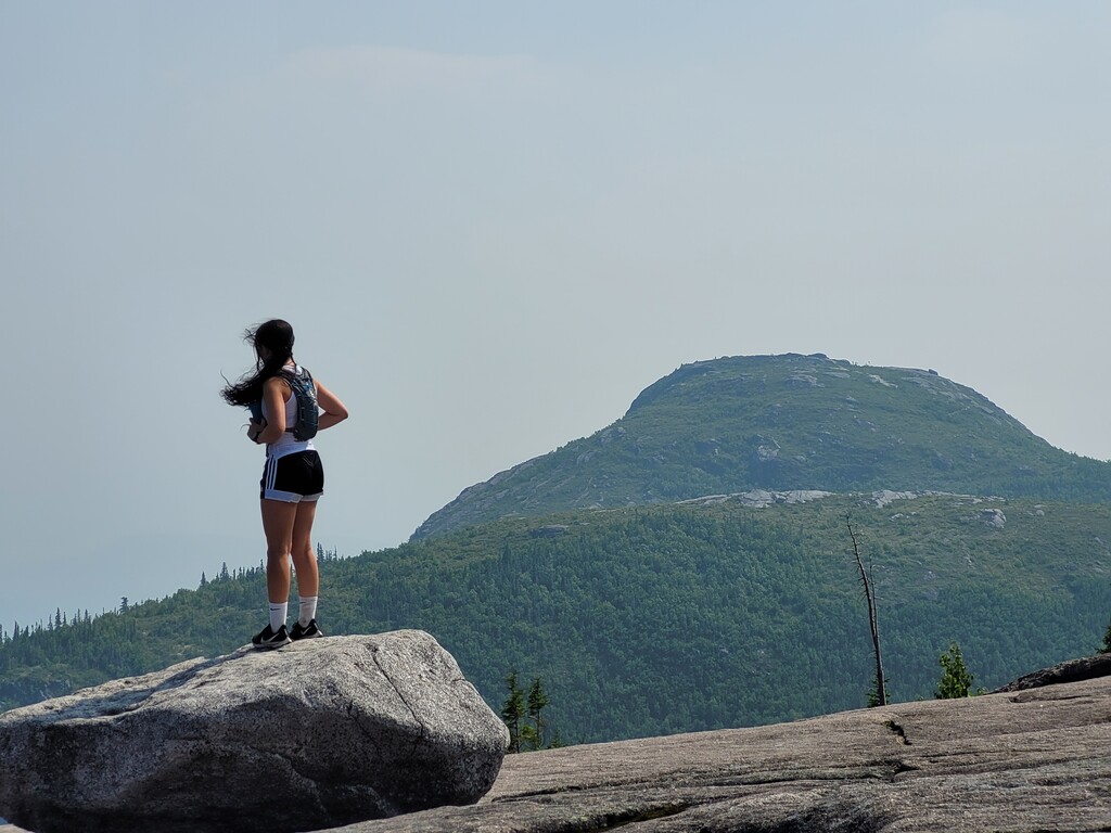 Effort d'équipe père fille non supporté, transporté 1.5l d'eau et gel de sirop d'érable chacun. De loin le FKT avec les meilleurs points de vue que nous avons fait. Nous avons souvent fait la montée du Lac des Cygnes, mais le tour des 3 sommets (plus 4 en réalité) est quelque chose de totalement différent. Le terrain difficile, les nombreux points de vue, vaut grandement la distance de plus. Avons pris ça mollo, admiré les vues et pris beaucoup de photos.