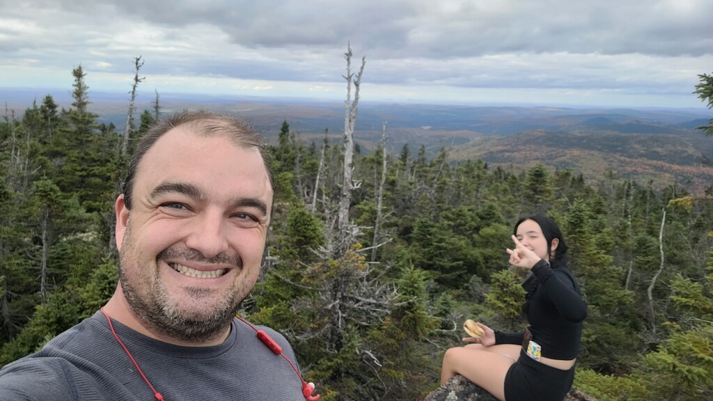 Father daughter FKT, training for firefighting (father) and rugby (daughter). Carried water and food. Very rugged trail, especially on the descent. Not much of a view while hiking, then suddenly we pop out on a summit with a spectacular 360 degree view.
