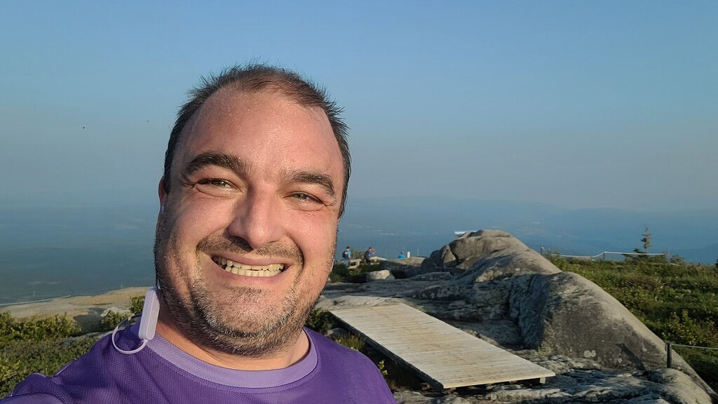 Sore legs, unsupported carrying 1.2l water, following 15 minutes after daughter also doing solo run. 10 second stop at the summit for a photo and immediate turn around.
