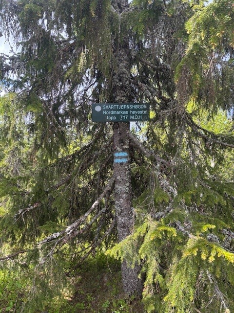 Svarttjernshøgda 717, the highest of the five was almost halfway on my trip kilometerwise. It offered a tower to see the view and nice trails easy for families to acces. After this summit, the trails were again more technical and passed by the rigde on the Pershusfjell 650m. This is a really beautiful stretch with a great view and nice pin-needle paths, stone and nice surroundings. From here, the trail heads towards Ringkollen 702m. On the way up, there was actually some strech on gravel road which offered a nice change from the technical trails and I made som km at a bit faster speed than before. I was starting to get worried about getting home, so time saved was valued. Ringkollen was really nice and offered a nice view and looked like a good trip for families. The trip down was through areas with old cottages and it looked like a nice area to stay for some days. The following path towards the last of the summits, Oppkurven, was a long strech. Most of it was beautiful as the rest, but I started to get really tired from no sleep, not enough food, and I had lost my salt and electrolytes along the way and I stressed as I could feel my body was out of balance. I focus to just get the legs to keep moving, as I'd rather lay down and sleep if it were an option. From here it started to get hard, but I managed to reach Oppkurven 704 m. I was really tired at this point and didn't even bother to climb the tower to see the view. And I would like someone to pick me up. But as the neares civilisation and road was kilomteres away anyway, there was no choice other than carry on. If i would have lied down, I would have fallen asleep and I was afraid to take too many breaks in case I didn't manage to move on. At one point I considered to stop at Smedmyrkoia, a DNT cabin, to spend the night. But as it from here was less than 20 km left and mostly downhill I decided to keep on moving hoping I would reach the T-bane before the night fell again. Luckily the rest of the way was easier, with more gravel and road rather than paths and trails in the forest. This was tiring on my legs, but easier to keep up the speed. The last rocky trail 5 km uphill to Frognerseteren T-bane was hard, but I knew the end was near and put in the last effort. Finally I reached my goal and got back before it started to get dark and the heavy rain set in.
