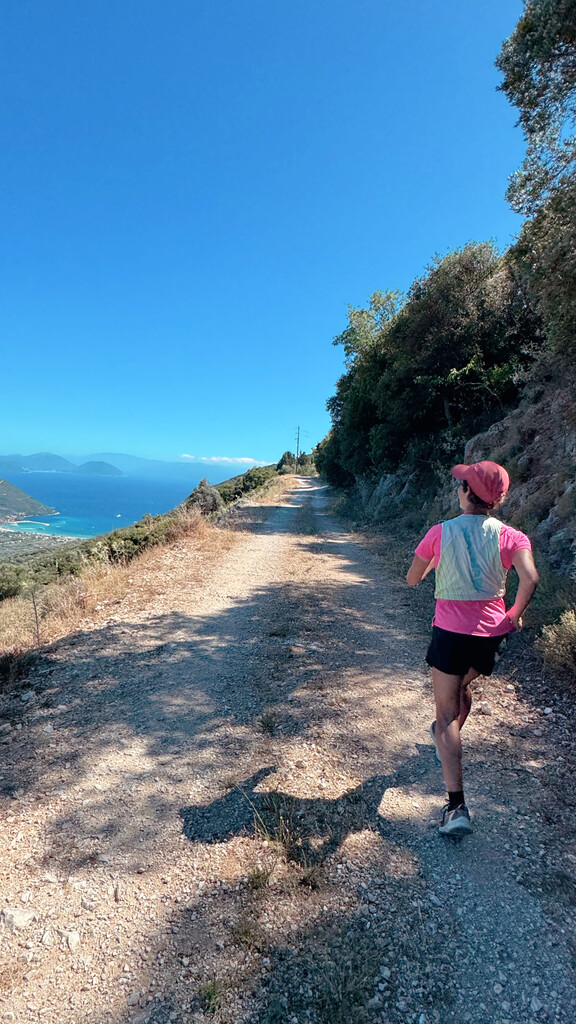 On Thursday, July 10, 2025, I set out to run an FKT for supported female on the 80km Lefkada Trail in Greece. I was supported by a group of friends who stayed with me throughout the day, taking turns pacing me on foot for the single track trail sections (or riding a bike next to me for the road sections,) while others went ahead to source water and snacks from local small cafes and businesses so that we could stay fueled, while also supporting small businesses on the island during the attempt.