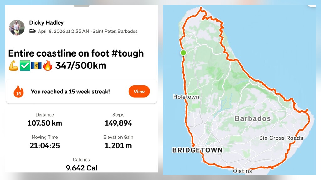 Left at 2.35am from Speightstown on my own, walked to The Animal Flower Cave in the dark, made it to the East Coast for sunrise, then Little Bay, Bathsheba, The Nothing Box, Bath Beach, Ragged Point, Airport, Oistins, Bridgetown along the Coast Road back to Speightstown. 28C degrees throughout, painful blisters, all the Powerade, Lucozade & water from local stores & rum shops. Glad to get it done!