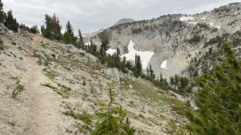 With iffy weather this was a safer choice than my original peakbagging plan. Despite some rain views were really nice most of the day. Mountain lakes and stunning peaks in every direction. I saw many backpackers, super friendly and much more accommodating than necessary.