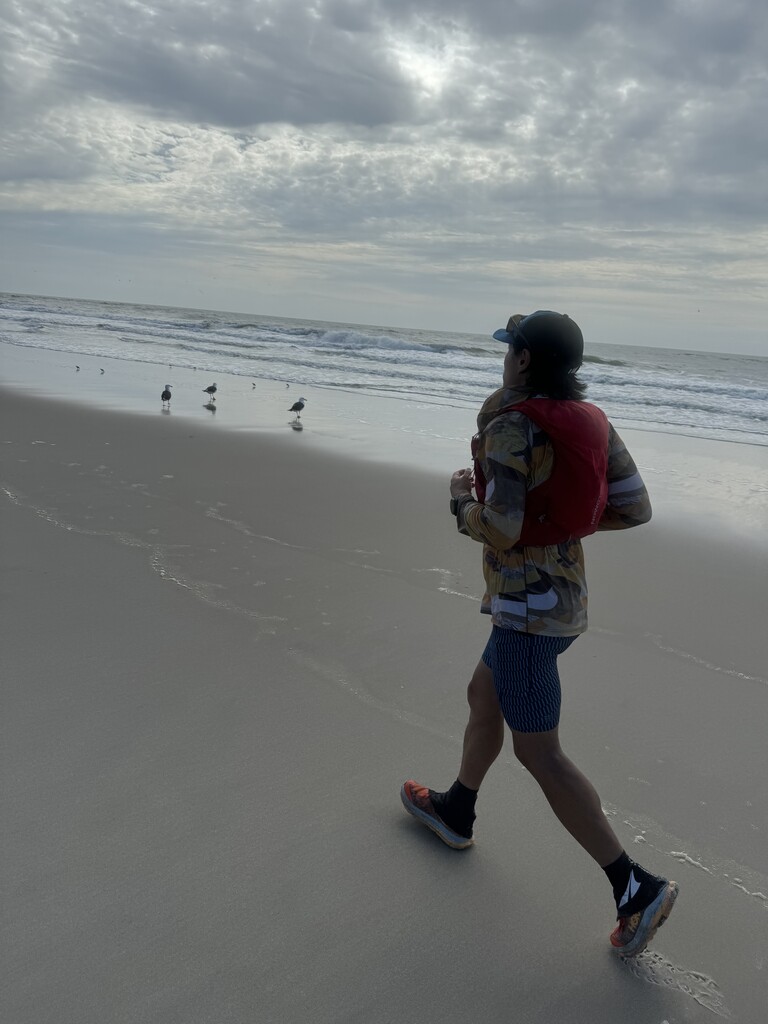 We decided to carry all of our food for fueling on our backs to minimize stops along the way. Additionally, we had to deal with some flooding in the towns which made for a fair amount of standing water crossings. We decided after Cherry Grove to stick to running along the southern coast and in the slightly more packed down sand along the water.