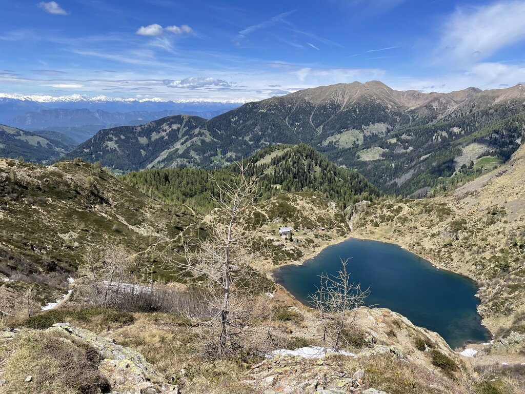 We encountered snow on the ascent toward Passo del Lago and again just before Passo della Portela, where we had to put on crampons.