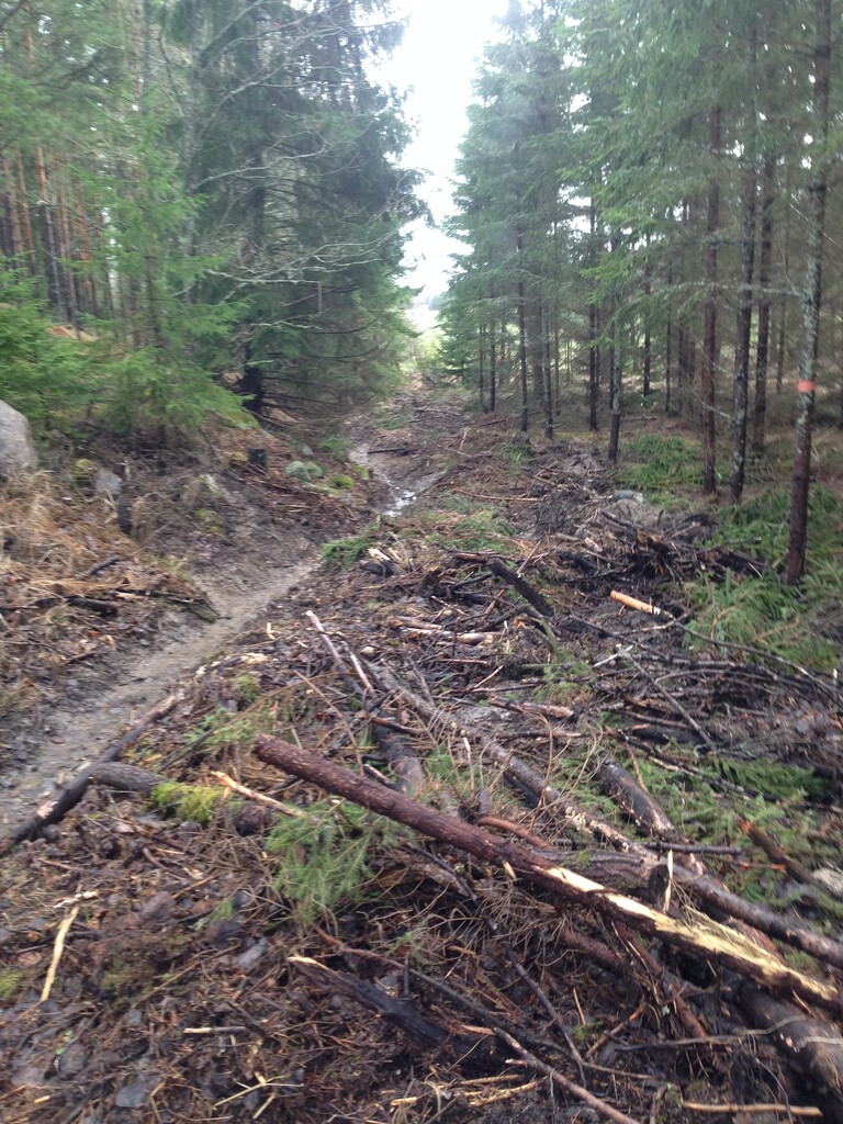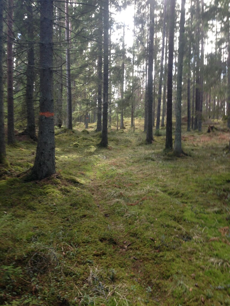Tyckte att kilometrarna tickade iväg fort och att jag borde kommit till Skiren-sjön för ett bra tag sedan. Till slut dök den upp och efter lite fin stig runt den så var det helt obanat, massor av kärrmark och en totalt ologisk markering av leden. Efter många om och men kom jag ut på en grusväg och konstaterade att leden måste vara en bra bit längre än de 36 km som anges överallt.