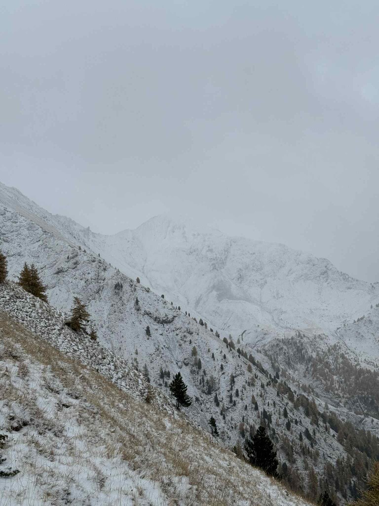 La neige s’est invitée sur les hauteurs et les nuages plafonnent à 2000 mètres. Je n’ai aucune garantie quant à l’accessibilité des sentiers en altitude.