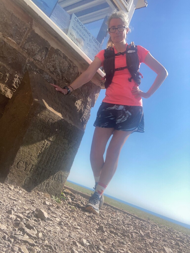 The last few miles were bit of a slog to the finish. I was finding it difficult to run on rocky farm tracks on very tired legs. In fact I didn’t even mind the climb up Rhossili Down as it was a good excuse to walk. Then I just had to navigate the Gower ponies with their foals on the path to the coastguard station before I collapsed next to the final stone and stopped my watch.
