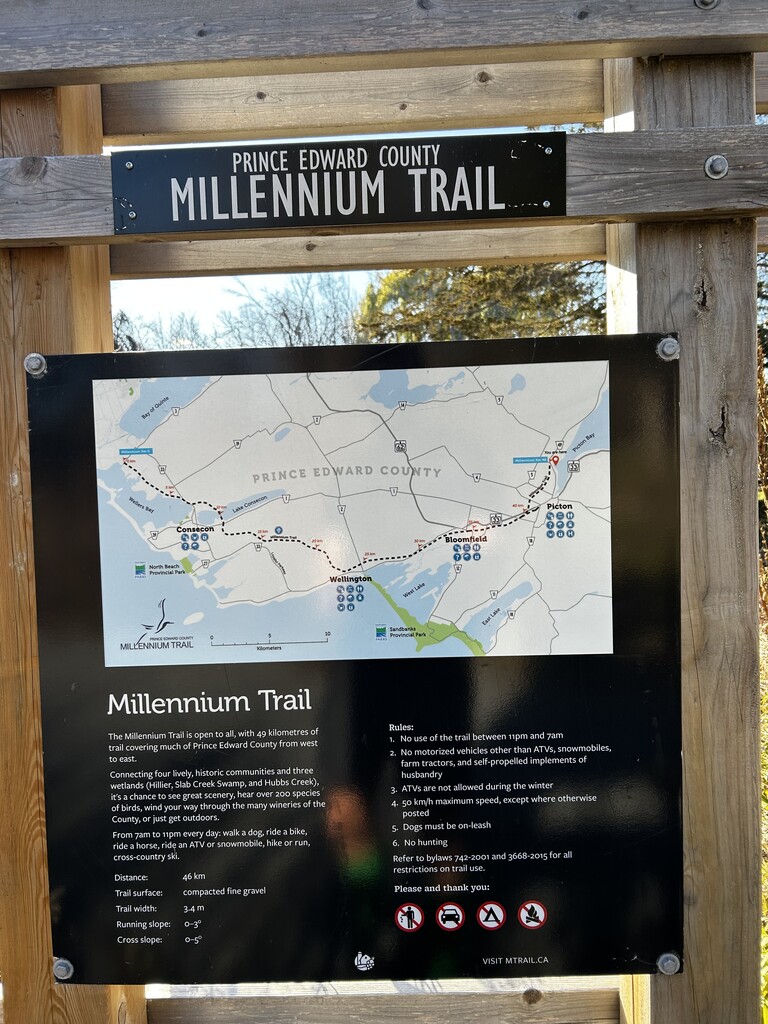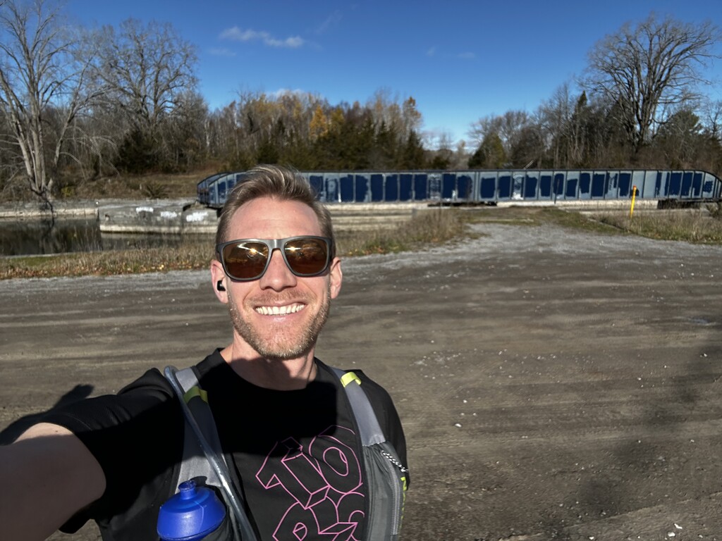 I set out on my first solo FKT attempt across the Millennium Trail on a crisp, sunny late fall morning. The temperature hovered around 5°C, with a bright blue sky and barely any wind - perfect conditions for a long run. I was looking for a challenging but fun route this fall to take advantage of a solid block of running over summer, and this one looked like a beauty! The in-laws are in Trenton so we dropped off the kids in the morning, and then I got dropped off at the start of the trail at the canal in Carrying Place, with a night away in Picton to look forward to at the far end of the trail.