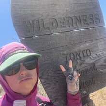 Planned to start at 5:30, last minute AM BM and wardrobe change pushed it back. So nervous! Sat on my sunscreen tube and nearly emptied it, oops! Saw an ICE officer a long way from a road. Hot but not unbearable. Vimal (boyfriend) had planned to start the Mogollon Rim Trail after dropping me off let me know he stayed in Phoenix because he feels like he might be getting sick (foreboding music plays). Right glute painful then resolved. Nice trail. Feet feel battered but otherwise doing aight. Heat/ UV rash begins. Nauseated in PM. Heat? Exertion? Elevation? Nerves? Turkeys. Pitched up just past water at 9:45P.