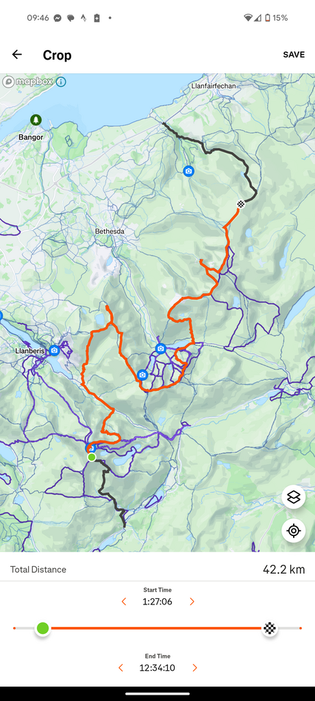 I started my Garmin at the bottom of the Watkins path, ending it once I was done with my run at the roadside - from viewing the part of the route from peak-to-peak, it appears to be 11:07:01