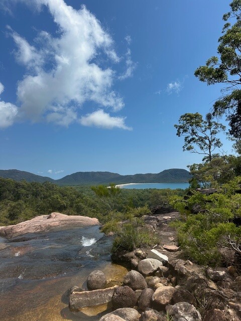 I chose to go North to South due to the availability of fresh water for drinking as i was going for the solo unsupported FKT. My father dropped me off at Ramsay Bay just after sunrise and met me at George Point to pick me up with my Mom and 15 month old daughter. Getting back to her was reason enough for me to get the trail done as quickly as possible. There was a lot of timber still down from this years floods and the trail is currently very technical with lots of exposed roots and stumps. The run itself went really well. It was super humid and hot and i really struggled in the last couple of kilometers along the beach in the midday sun. Due to how late in the season it was, i didn't think that i would see many people, however there were still quite a few friendly faces along the trail. We wrapped the attempt up with a meal, beer and a swim at the Lucinda pub.