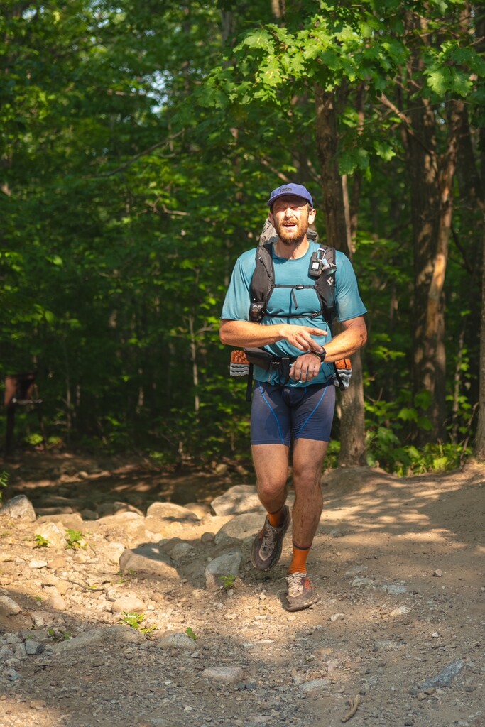 I finally made it across the long haul of a road walk. I had only taken two 32 mg caffeinated gels until that morning when I ended up taking 600 mg throughout the day. My last 200 was on the Whiteface Landing trail where I started to feel so tired and had to fight off the urge to sit down and sleep continuously.