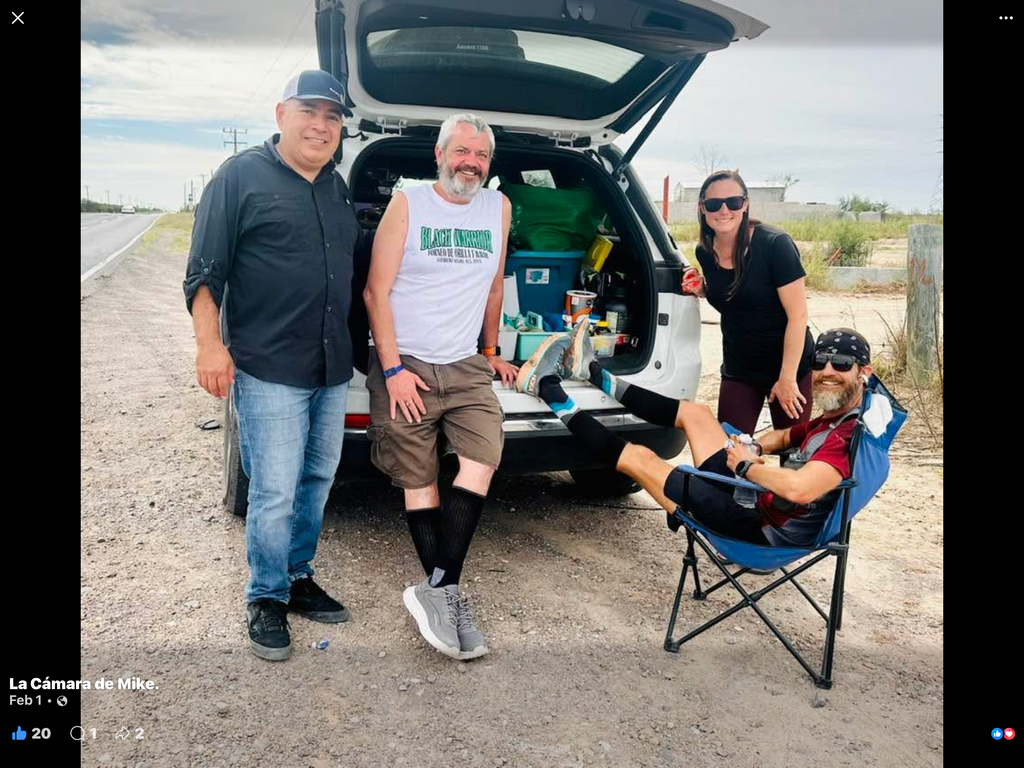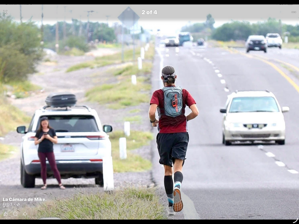 On January 2, 2026, at 7:04 a.m. PST, I started at the Garita Central Peatonal in Mexicali, BCN Mexico running south, traveling on foot the entire length of the Baja peninsula. I completed this route under my own power aided by the support of a crew vehicle and two crew members. I traveled along the primary Highway routes south (as described in the route summary) over the course of 38 days, 5 hours, 52 minutes, and 39 seconds. I finished at El Medano beach in Cabo San Lucas, BCS Mexico, on February 9, 2026, at 1:52 p.m. GMT. I traveled almost primarily in daylight hours (I ran into the dark by headlamp a couple evenings) and slept at night, returning exactly to the last point in route the following morning to continue on. I carried on me at all times of progress in route, a Garmin InReach mini2, a Garmin fénix 6 Pro, and an iPhone 12 in order to track and verify my location and movement. The crew had satellite internet connection using a Starlink Mini to which I was able to connect via WIFi when in proximity. This provided Garmin Connect Livetrack, which was shared on multiple social media platforms and utilized by project followers, reporters, and safety crews throughout the duration of the route. I often used a running vest to carry hydration flasks, nutrition, tracker, and other compulsory items and running poles were used at varying times. The team provided supplemental nutrition and hydration they procured along the way, along with coordinating with various local organizations to secure lodging, security, and public relations for the project. At a few locations along the route, several people joined me in running small sections in support of the cause that was highlighted throughout this project. While this peninsula is sea level along its perimeter, the route crosses back and forth from the east and west coasts several times, navigating the elevations of its mountainous backbone. The grades to ascend and descend are greater than may be expected. The passage through an open dessert can also be deceptively narrow along much of the route, allowing little room for error between the athlete and other traffic.