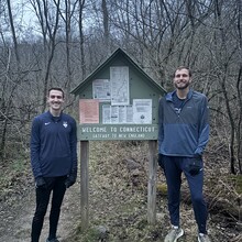 Started right around 6:10 at the south trailhead with Josh. Made good time from the start, with 8 stops to resupply at crossing that made sense. Stephen joined from the River Road under St. John’s ledges, ran about 6.5 yo to Old Sharon Road. We had to take off shoes and wads through the stream crossing between Cornwall Bridge and Old Sharon - lost a couple minutes, then had a long stop at the car. Josh made it through the first 27.5 or so before stopping for a break, and I ran the section from West Cornwall to Lime Rock alone (besides Stephen coming up from the end for the last mile). I took a fall in there somewhere around mile 30 and cut my knee, but not badly. Stephen and Kevin joined for the roads through Falls Village, then Kevin kept going for the next section until the base of Bear Mountain, where Josh joined back in. We were moving for the later half, and although I was getting tired I was watching the clock - first to try to get under Jeremy’s unsupported time, then started to realize I could manage getting under 10 hours and finally pushed to clear 9:30. Coming off the back of Bear Mountain was the worst part - there was snow above about 1000’ elevation for the whole run, but the ledges were covered and really slow to go down. At the end, I missed the sign - realized a minute or two later, then returned to it. I had dropped Josh down the back of Bear Mountain, and he started descending Sage’s back to the car, so I had a very anticlimactic ending alone. Took a pic with the border sign, then started walking out.