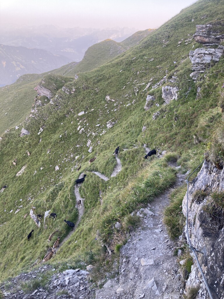 Lenzerhorn dann wie immer mega schön, aber auch technisch und ausgesetzt. Oben am Rothorn dann auch wieder sehr viele Kühe und für mich ne Cola (deshalb self supported) und dann wieder runter.