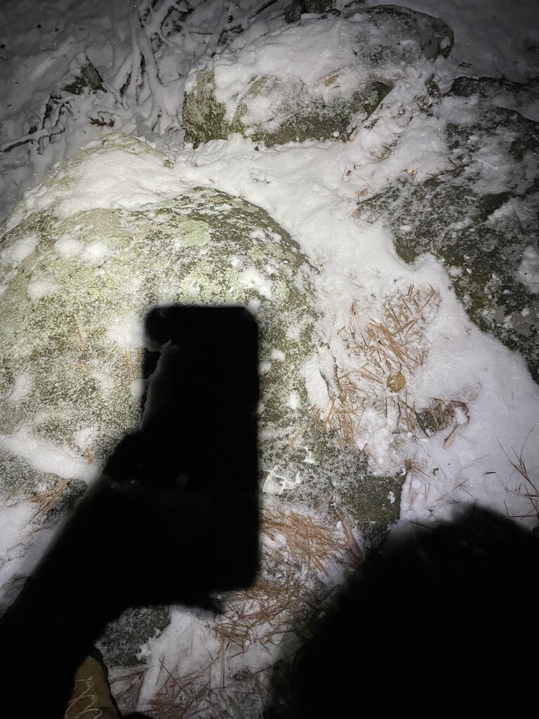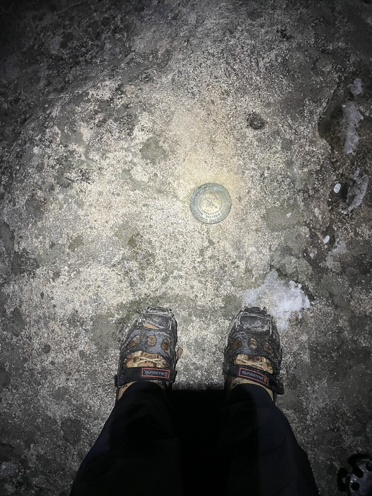 I was dropped off by a friend at Deer Leap Parking lot at 4:00 am and that is where I started the Lake George 12ster WU alone. I gathered my gear and I crossed the road and started my tracker at 4:08 am. I reached the sign in at 4:10 am. I summited Brown peak at 4:49am, Summited Huckleberry peak at 5:19am. I summited Five Mile at 5:36am. It was brutal cold and this is where I almost stopped and went to my car. I continued on and summited 5 mile at 6:41 am , along with French Mountain at 8:01am. I summited First Peak the final summit on the tongue range at 8:48am. At this point I returned from where I came and started the bushwack between First and French Peaks using my map and compass heading due west to North West Bay. I came to cliffs and had to down climb. I climbed down a rotten tree , which crumbled with me on it and I fell to the ground. I reached the parking lot where my car was and resupply of food and water that was in my car 6hrs and 46 mins after saying goodbye to my friend. I had not seen a single person since that time. I drove to Cat mountain and hiked Cat via the Red trail. I summited Cat at 12:22pm. I then drove to Thomas trailhead and summited Thomas at 14:16pm. I should have done the loop to save miles and time but was worried about getting off track between the two mountains where the trail can get confusing. I then drove the hour distance to Hogtown Parking lot and walked the road to the upper parking lot for Erebus and Sleeping Beauty. Along the way I ran into the only person that day. We chatted for about 5 minutes. I summited Erebus first at 6:18 pm. This is when all of my batteries started to die and I started to panic. I contemplated quitting but was the same distance between Sleeping Beauty and my car so I continued on to Sleeping Beauty and summited that at 7:44pm. This trail was coated with snow and thick ice. I arrived back at my car and resupplied with my water and food which was mostly frozen. I drove to Buck trailhead and summited Buck at 10:41pm. I then drove the hour to Black Mountain trailhead. I summited was extremely cold at this point and was wearing all of my layers while I climbed Black Mountain. I was shivering from head to toe and couldn't open my wrapper for my food. I was stumbling in the dark. I summited Black on 1/3/24 at 2:29am. I quickly started running toward the trailhead and signed out at 3:45am. I totaled 45.5 miles and 9885 feet of elevation gain.