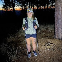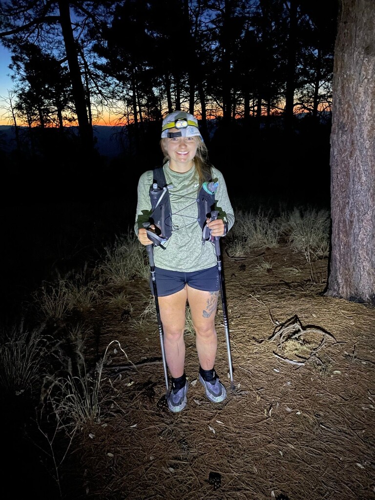 As night fell on my second day, I headed to the start of the Airmen Peak section where I would pick up my pacer, Isaiah, who I had never met, but graciously offered to pace me that morning when he had heard that I was looking for someone. In my training camp, I had also scouted Airmen peak, and it was sketchy enough that I had planned my pace chart around doing that section during the day. Because of having to make a pivot on night one, it ended up pushing that summit back to around 8 PM. Looking back, I would not recommend doing this summit at night. This peak is the perfect mix of overgrown, steep, and loose to make for a real kicker around mile 65. After some difficulty navigating the best way down in the dark, we made it, and were on the way to Green Mountain for the final summit. I ended up finishing right before 5 AM. After finishing, I was rewarded with the most gorgeous sunrise on the way back down to the parking lot, where my friend Eric picked me up.