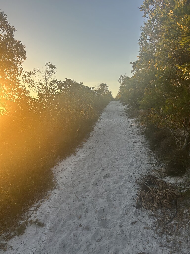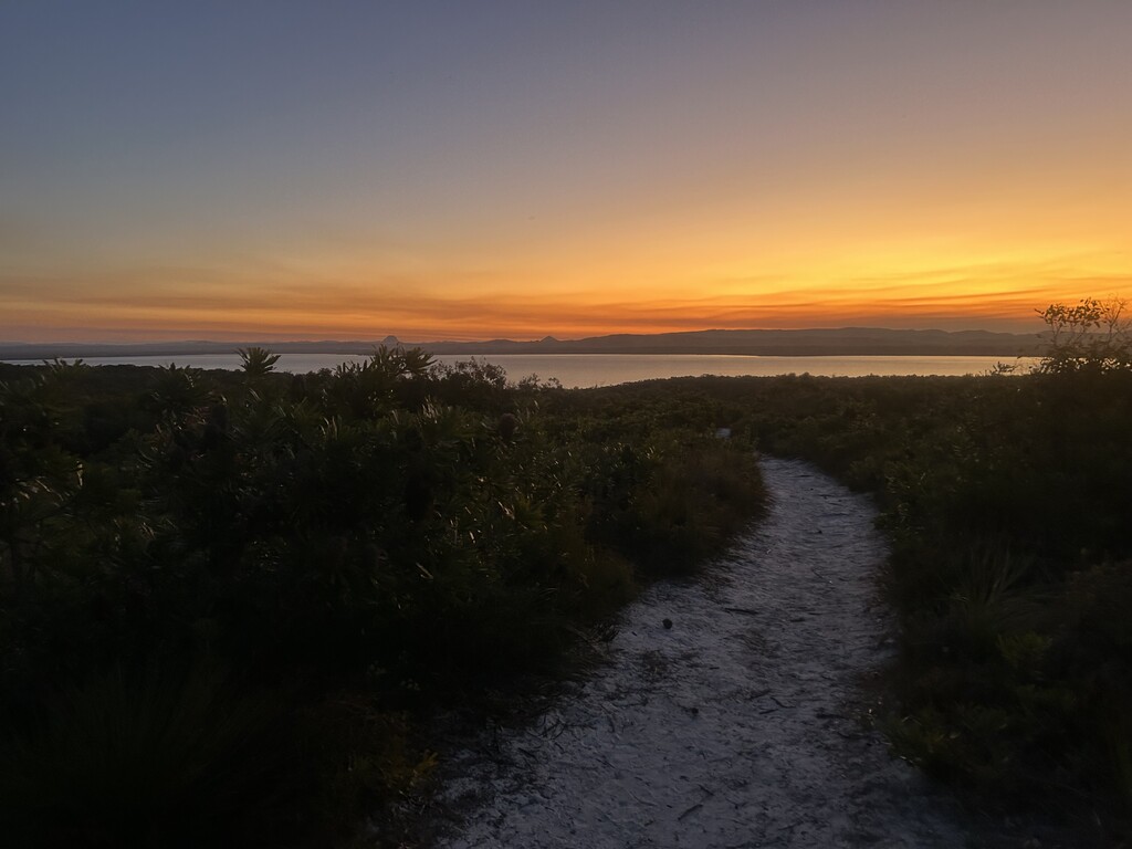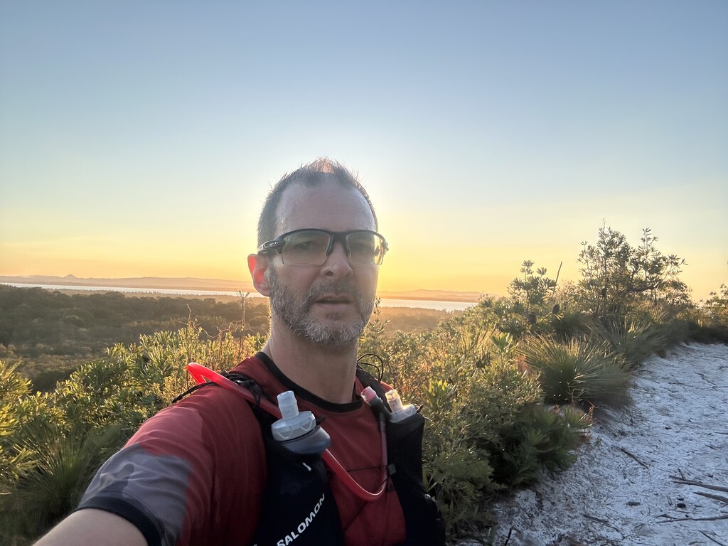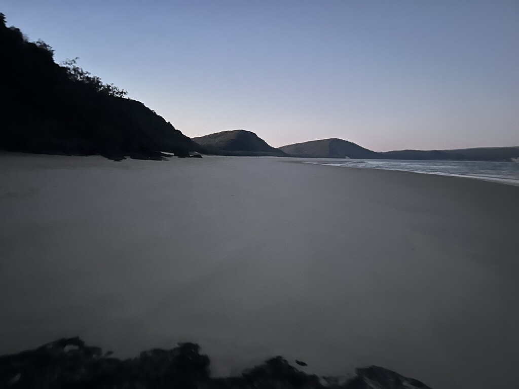 On the outbound leg I turned right towards the beach shortly after Kauri camp, this took me to Freshwater campsite and onto Teewah Beach (where I regained reception). The tides were perfect for a run about 8km up to Double Island Point for a stunning sunrise. I was pretty tired and felt a bit sick from the warm gels by then, the sunrise and views gave me a welcome energy boost! From there I could see across the bay to the Rainbow Sands which was spectacular.