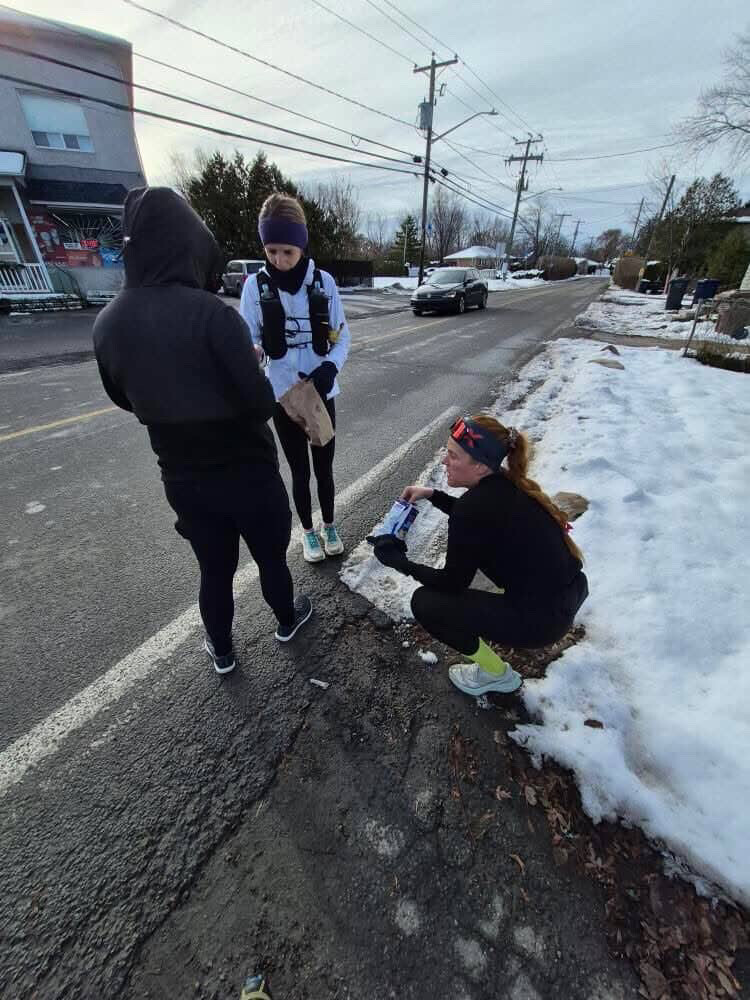 I had been wanting to run this FKT for a long time, but the right moment never seemed to come. Then, almost last minute, I managed to gather three friends to crew for me. We started at 8:00 a.m. on Saturday, November 15. We were lucky with the weather, a little cold, but the snow from the previous days had melted just enough to leave patches of asphalt. Since I had shared my plans on social media, I found out at the start that two other runners were attempting the same route at the same time. I had hoped to finish somewhere between 7h00 and 7h15, but with my lower training volume over the past few weeks and the Bromont Ultra 100 miles at the end of October, I think this was simply the best my body had to give today, and that's more than enough. The sunshine, the laughter, the fun...it made the whole experience special. I had been a bit nervous about this route, but in the end, it was beautiful...a completely different way to see Laval.