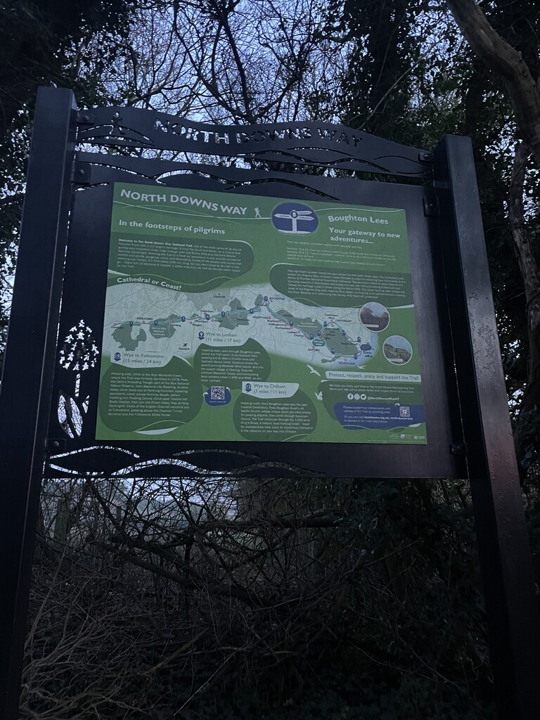 Arrived in Broughton Lees (where the loop starts) at 16.08pm on 22nd December. Time is from time stamp from photo taken of signpost at the beginning of loop. Stayed in Canterbury and carried onto the finish on the 23rd. Arrived back in Broughton Lees at 10.25pm on the 23rd December.