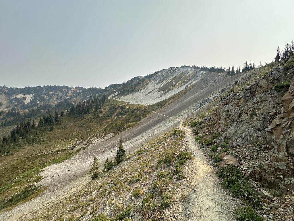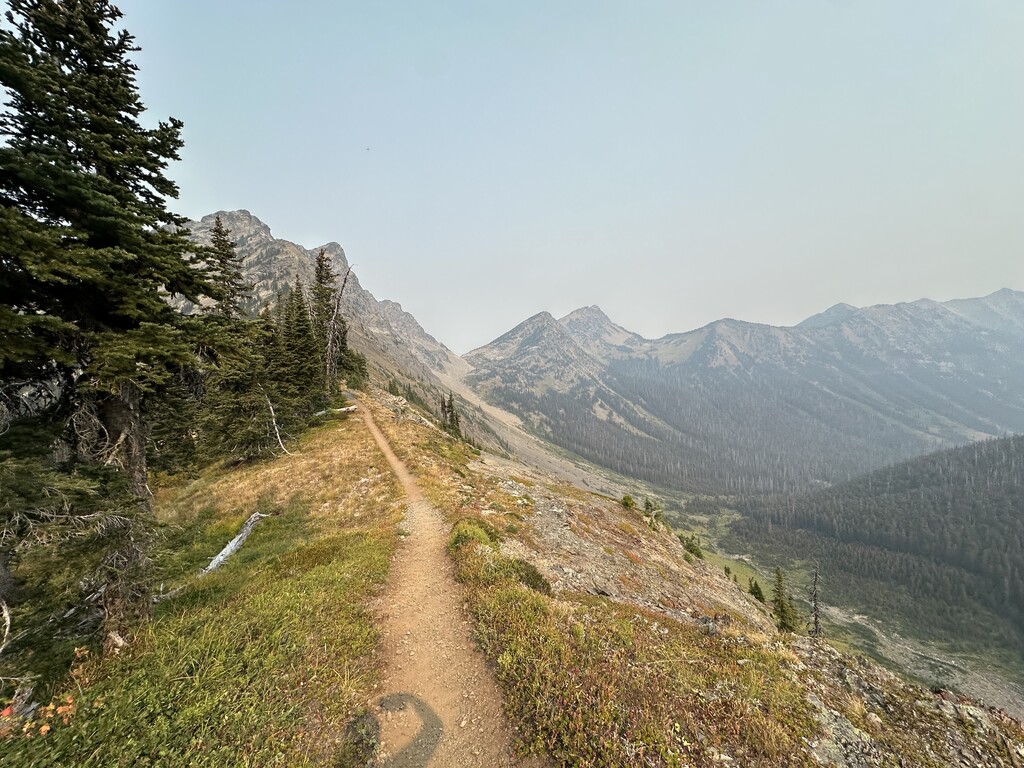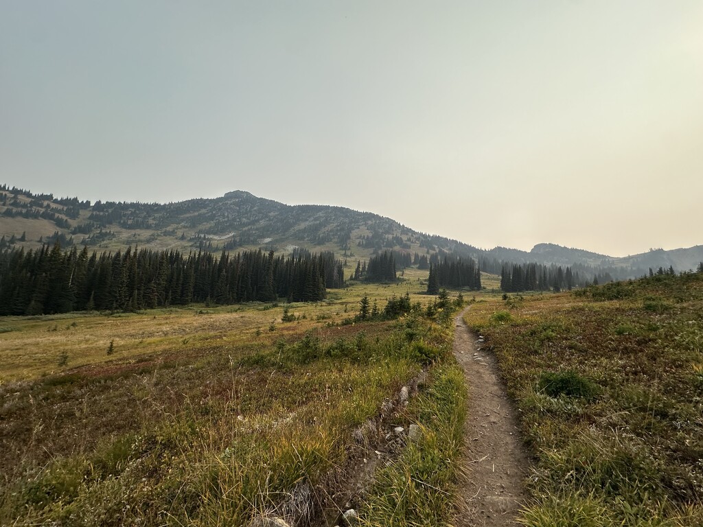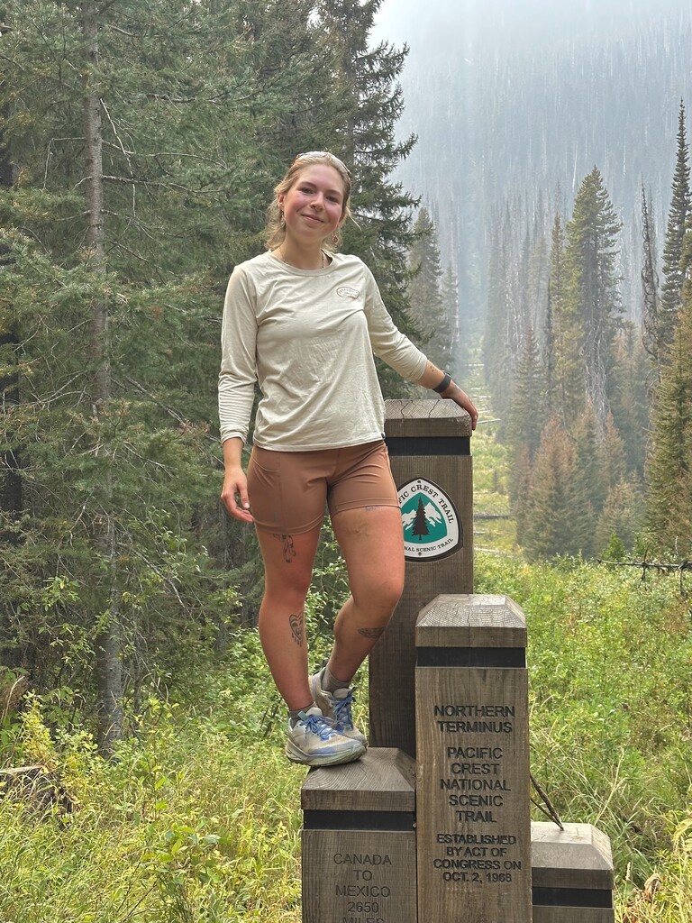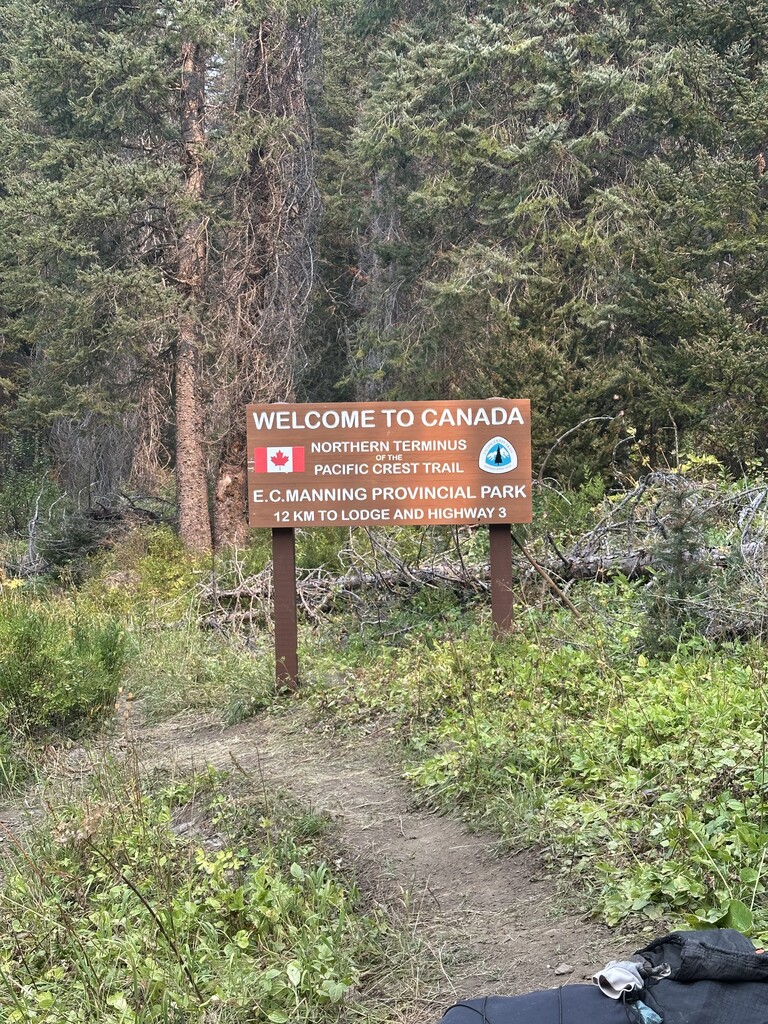 Started bright and early at 6:22am from harts pass solo. I had my pack packed with my ultralight overnight setup, and 2ish days of food. It was a bit hazy from wildfire smoke in the distance, but the trail was in great shape, always nice to enjoy the cruisey miles of the PCT. I passed many thru-hikers finishing their journey, and it was fun sharing congratulations. I carried my hydrapak filter that screws onto my flask, so water fills were super quick and there were streams every 5ish miles. The day went by pretty smooth, and before I knew it I was in the home stretch to the terminus. I came running to the terminus and got to soak it up with a few other hikers, who kindly took some pictures for me.