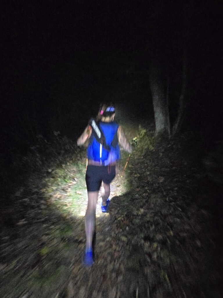 I would not see my crew again for another six hours, keeping my goal pace of 20minutes. From now on also I would have a bladder at all times and two flasks of Carbs Fuel. We took headlamps here. The ultimate goal was to make it to the next crew without them, but thankfully we had them because they were used.